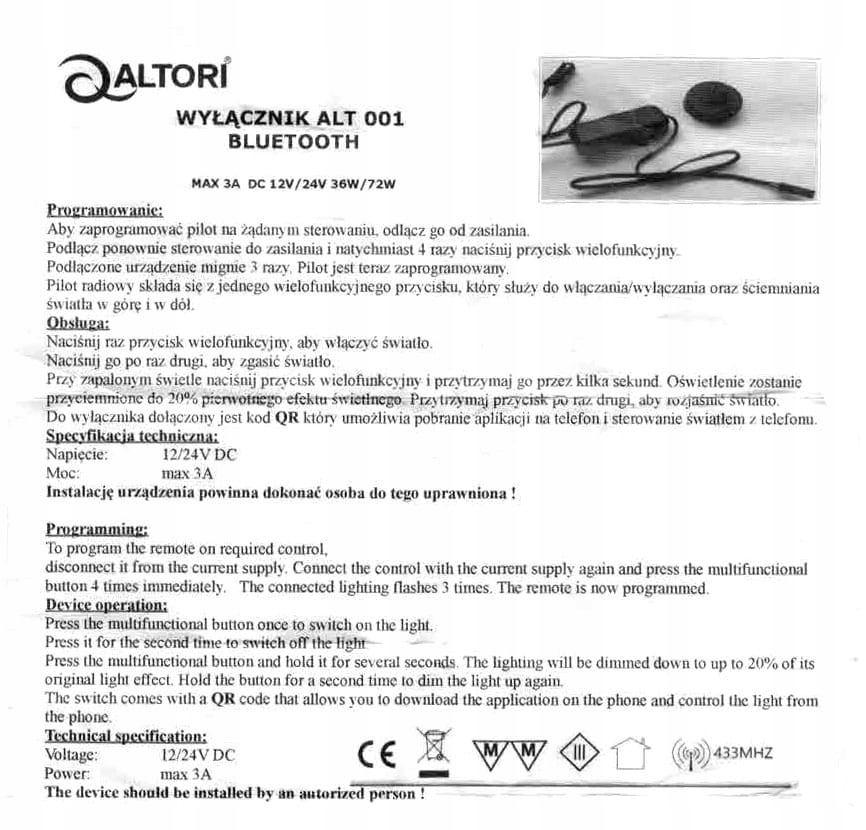 Оплачивая «Выключатель света для мебели с пультом дистанционного управления Bluetooth», вы можете быть уверены, что данный товар из каталога «Мебельное освещение и светодиодные полосы» будет доставлен из Польши и проверен на целостность. В цене товара, указанной на сайте, учтена доставка из Польши. Внимание!!! Товары для Евросоюза, согласно законодательству стран Евросоюза, могут отличаться упаковкой или наполнением.