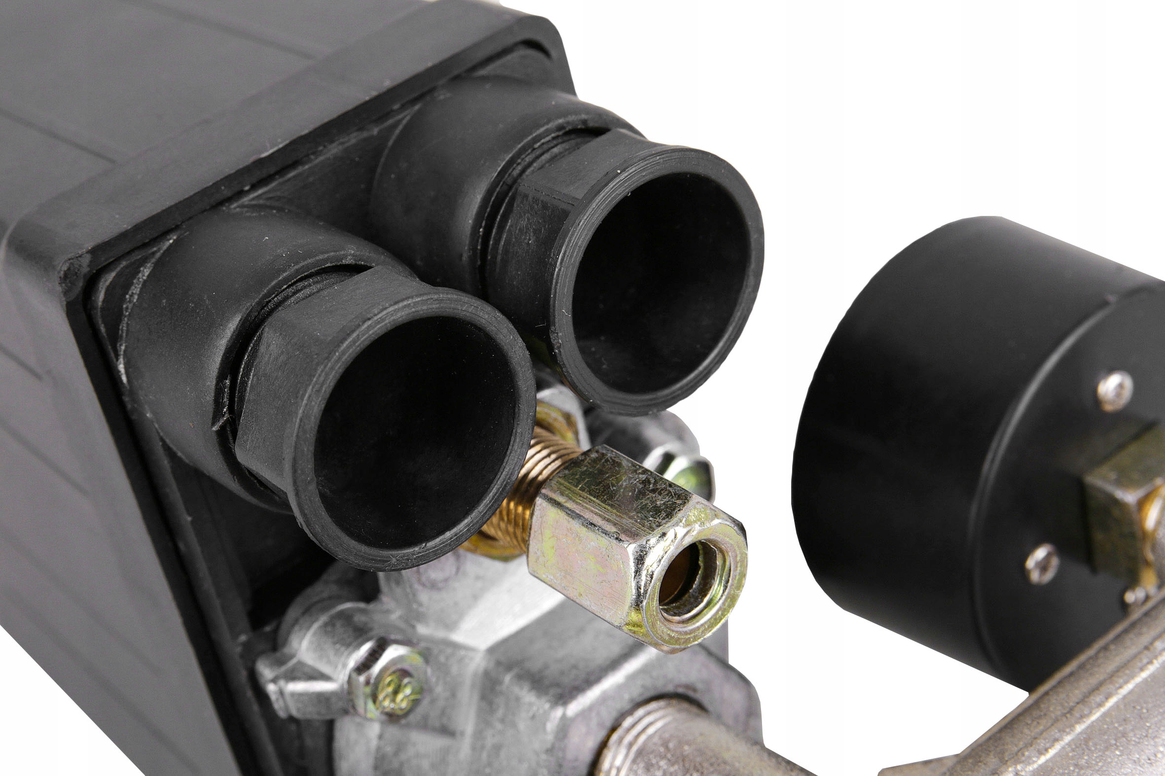✅ Универсальное реле давления (реле давления) с редуктором, коллектором, двумя быстроразъемными разъемами и манометрами - надежное решение для компрессоров с питанием от сети 400В.