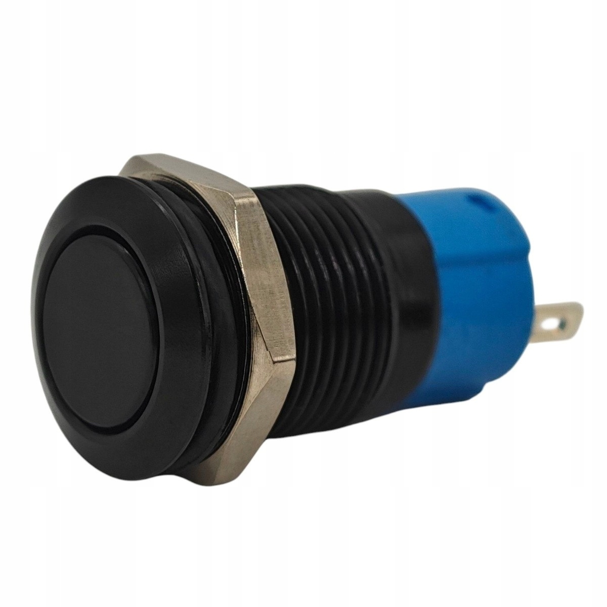 Кнопка ВКЛ/ВЫКЛ с фиксацией, 12 мм — металл, черный, водонепроницаемый (2 А/36 В, 50 000 циклов)