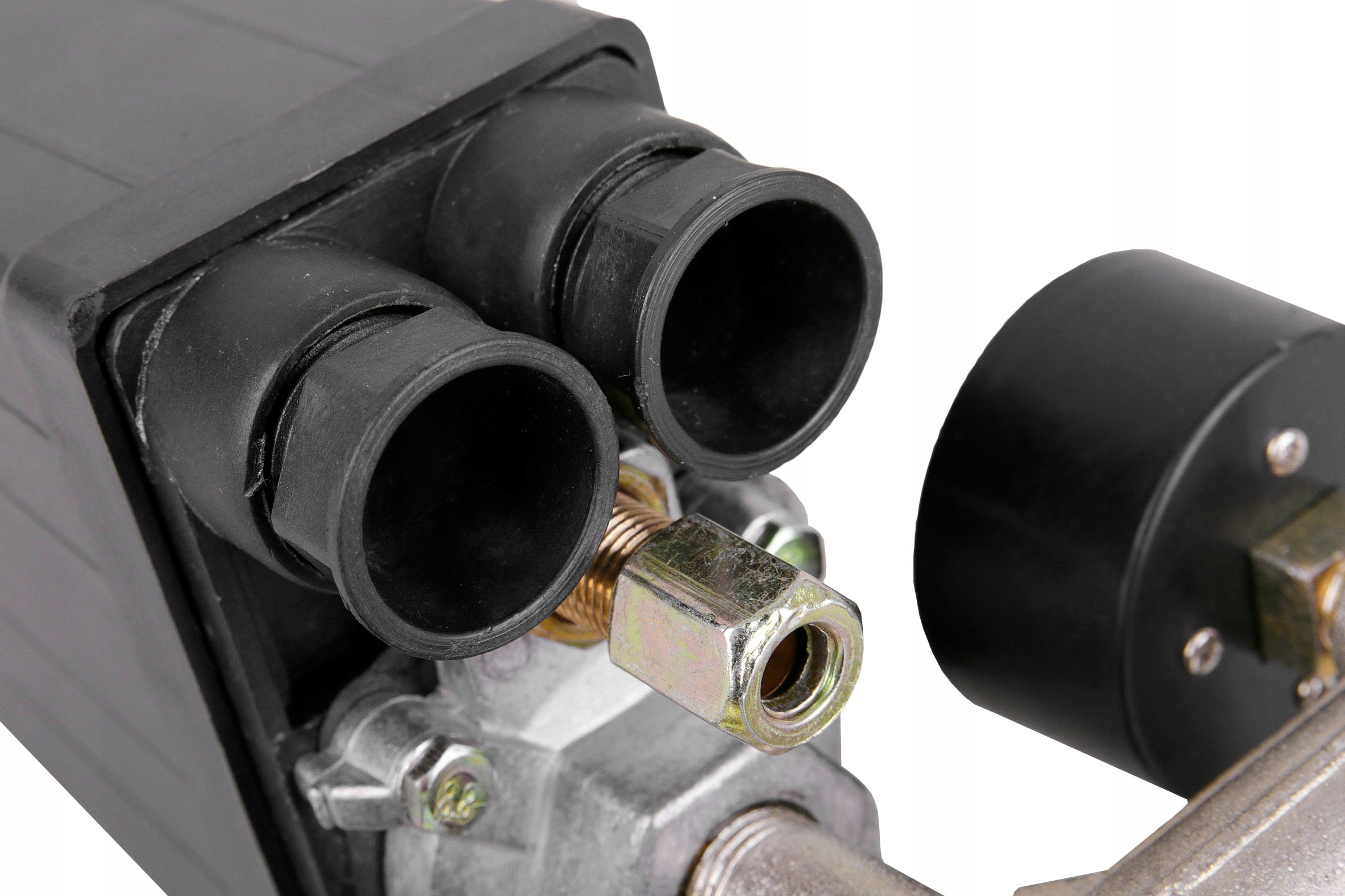 Реле давления (прессостат) с редуктором, коллектором, двумя быстроразъемными соединениями и манометрамипредназначено для компрессоров различных производителей с питанием от сети 230В. Предлагаемый переключатель является универсальной запчастью, предназначенной для компрессоров, преимущественно с баками меньшего размера (24, 50, 60, 75л).
