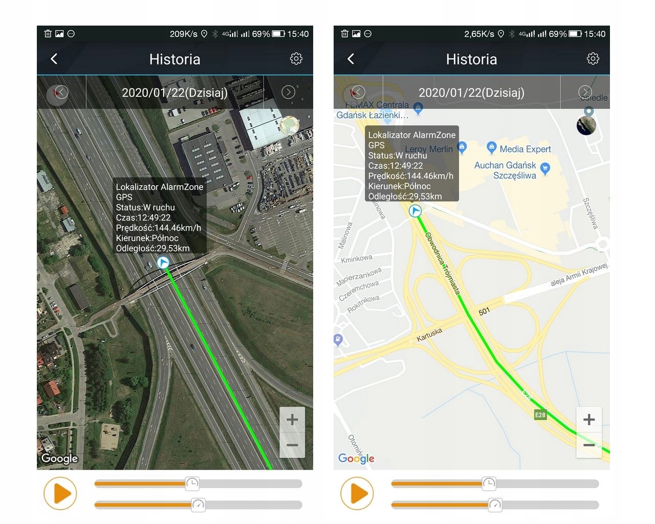 - Дружелюбное и функциональное программное обеспечение на польском языке - функция прослушивания, функции сигнализации, нарушения скорости, геошлюз, история маршрутов до 6 месяцев назад с возможностью архивирования файлов и др.