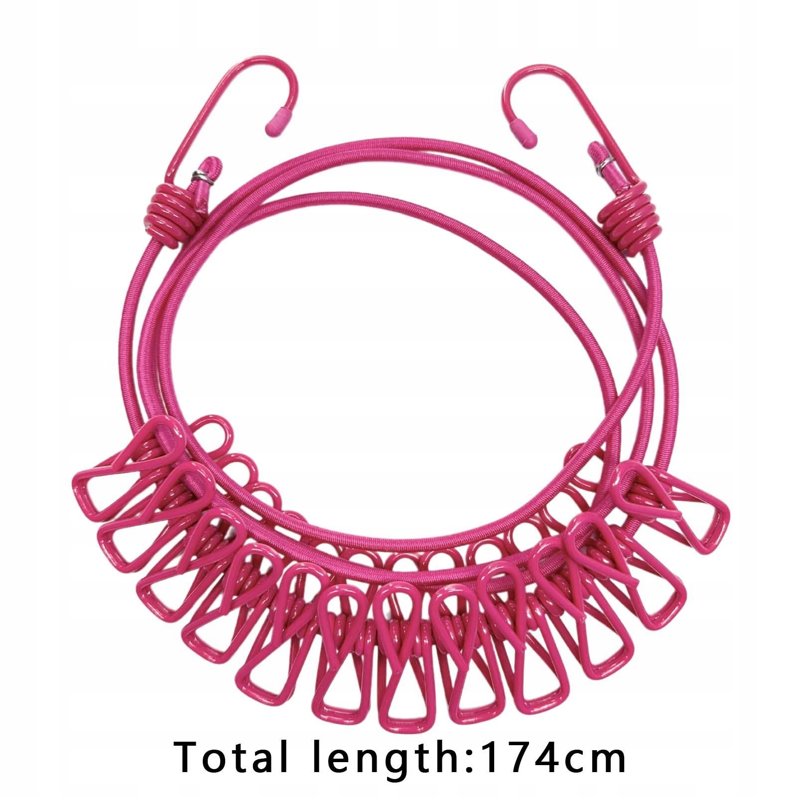 [В комплект входит]: В комплект входит 1 портативная эластичная веревка с 12 клипс для подвешивания одежды. Обратите внимание, что все измерения являются приблизительными из-за ручной корректировки измерений.