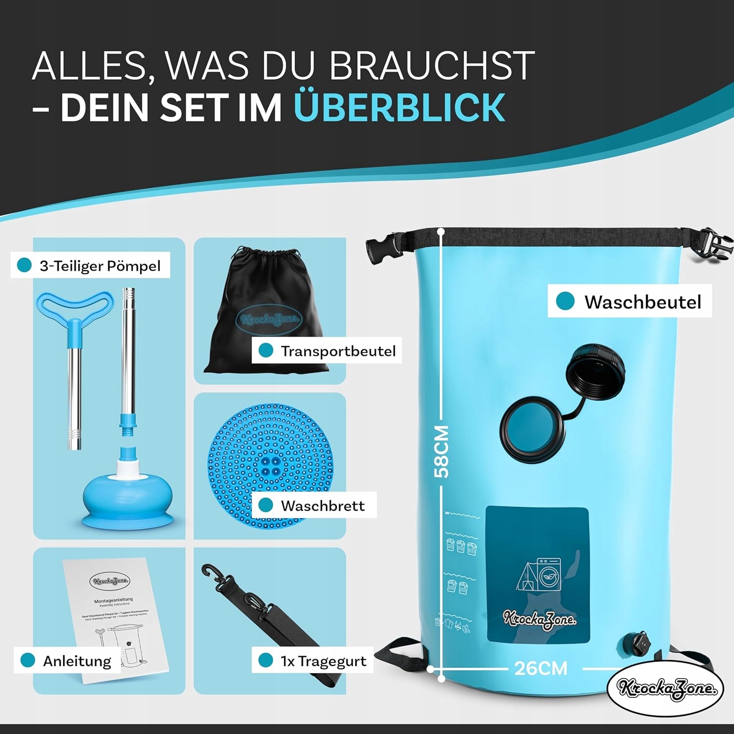 Идеальный спутник в путешествии — компактный набор для стирки, помещающийся в мини-сумку. Идеально подходит для небольших помещений, таких как фургоны и детская одежда.