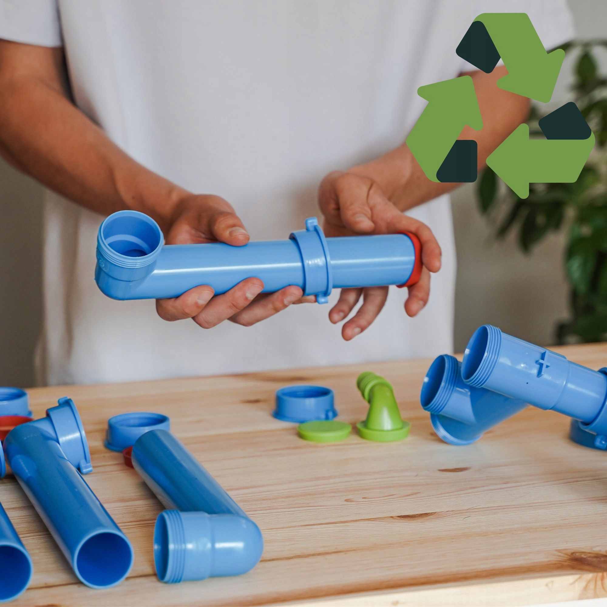 - Трубы из переработанного пластика (мин. 70%)