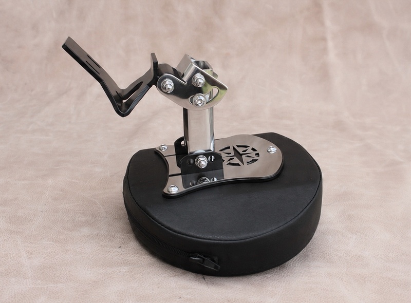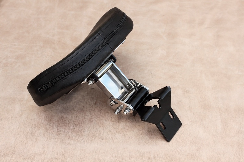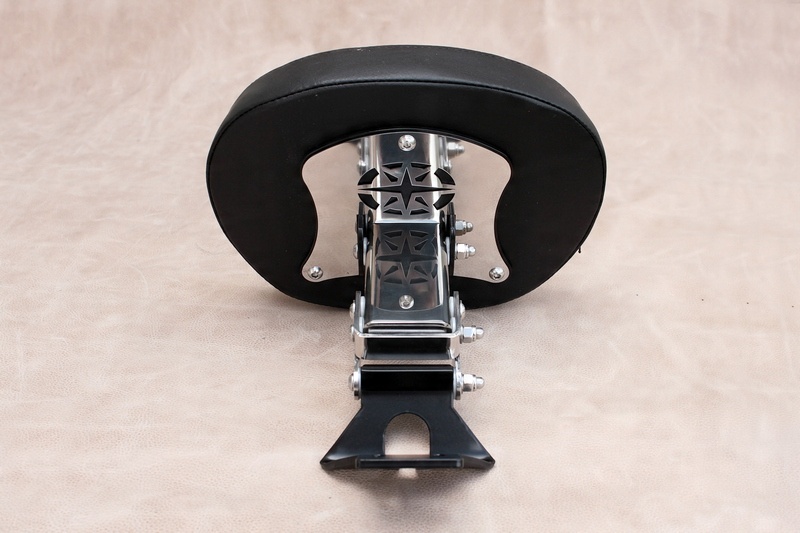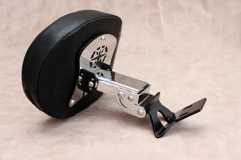 Спинка из кислотостойкой нержавеющей сталитолщиной 3/4 мм, отполированная до высоты блеск. Использование такого материала для производства обеспечивает вечную долговечность и стойкость к коррозии. Элементы вырезаны лазером, сварные швы шлифованы и полированы, что гарантирует качество и эстетику<. /б> б>. Удобная профилированная подушка покрыта экологической кожей, идентичной обивке мотоцикла. Спинка подвижна, угол наклона спинки можно регулировать.