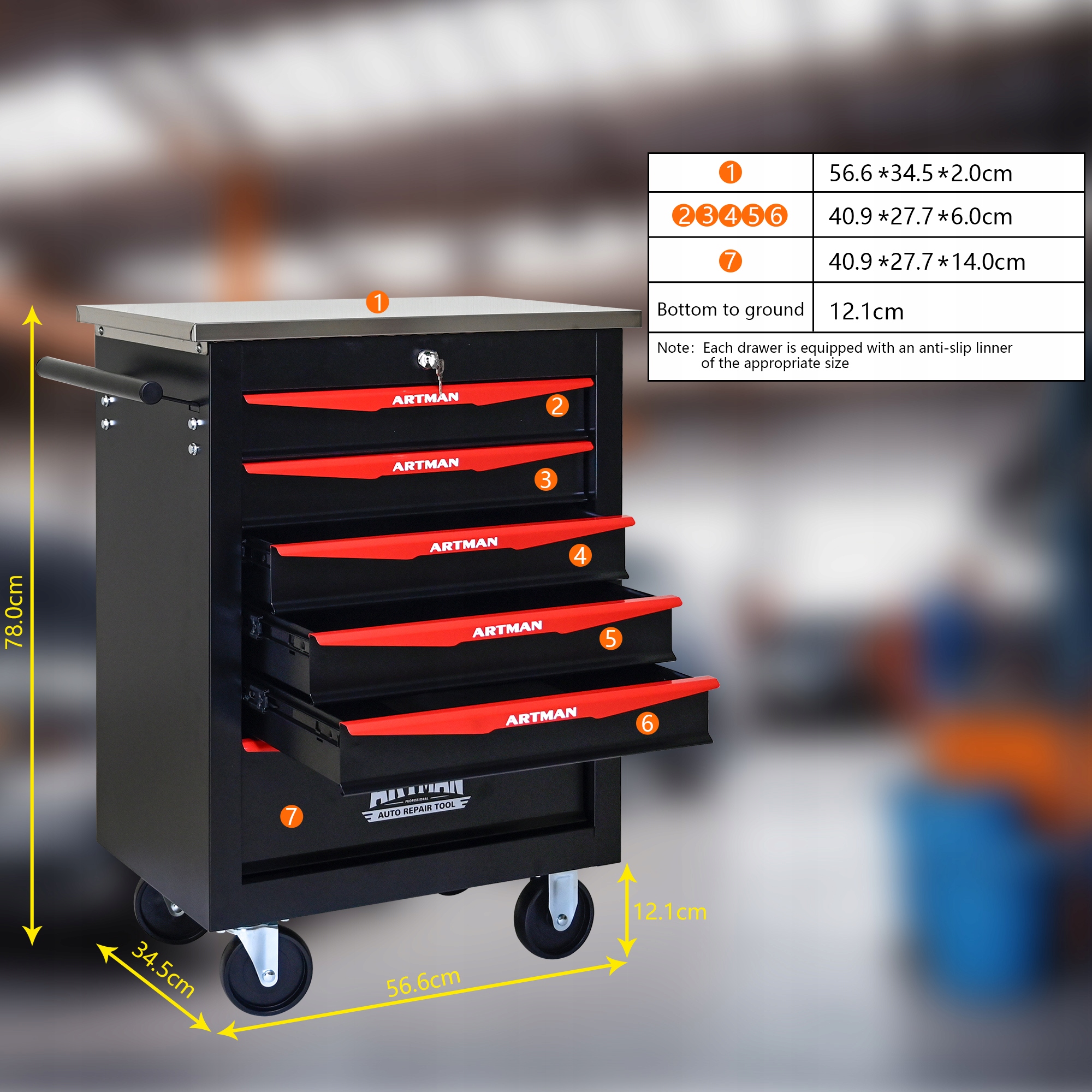 【Artman】 Идеальный органайзер для ящика для инструментов имеет 6 плавно выдвижных ящиков с центральным замком. Эта система обеспечивает безопасное хранение всего содержимого, с легкостью защищая ваши ценные инструменты от потери или несанкционированного доступа.