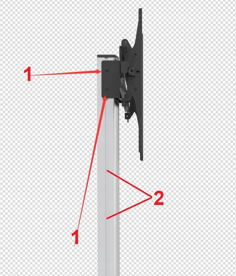 Вы можете установить телевизор и полку на любую высоту по вашему выбору. Единственное ограничение – общая высота подставки. Держатель и полку можно перемещать (как вверх, так и вниз, а затем прикручивать) по «пазу», видимому на фото.