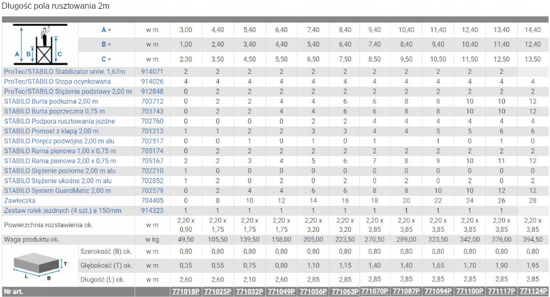 - Одобрено TÜV, грузоподъемность 200 кг/м² (группа лесов 3) по PN EN 1004-1