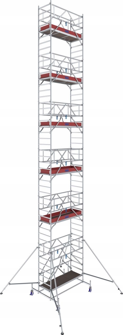 - С рабочей высоты 7,40 м, что обеспечивает дополнительную стабилизацию и безопасное использование в конструкциях, а также простые в установке опоры с бесступенчатой регулировкой и телескопической опорой (диапазон регулировки до 230 мм).