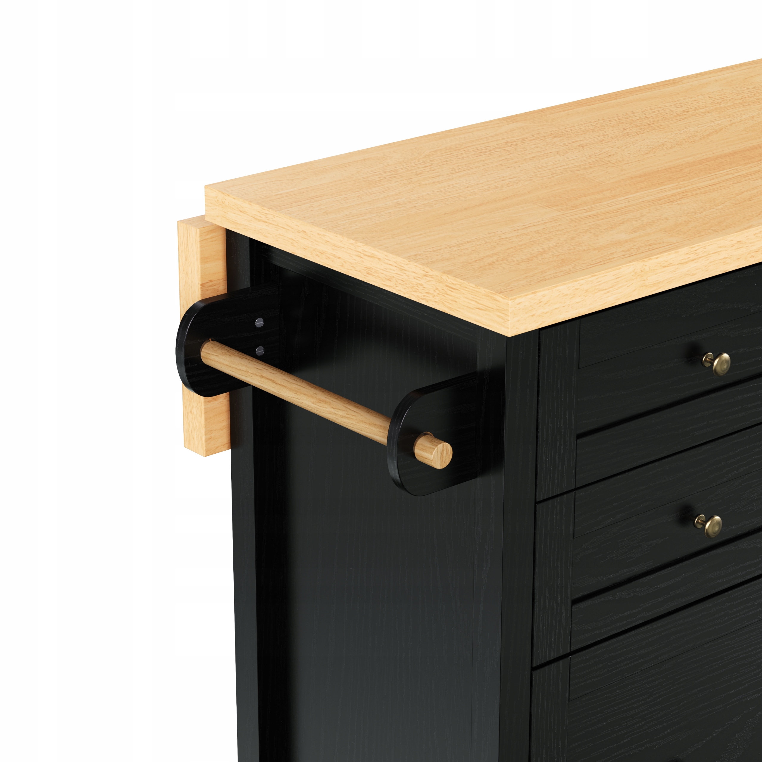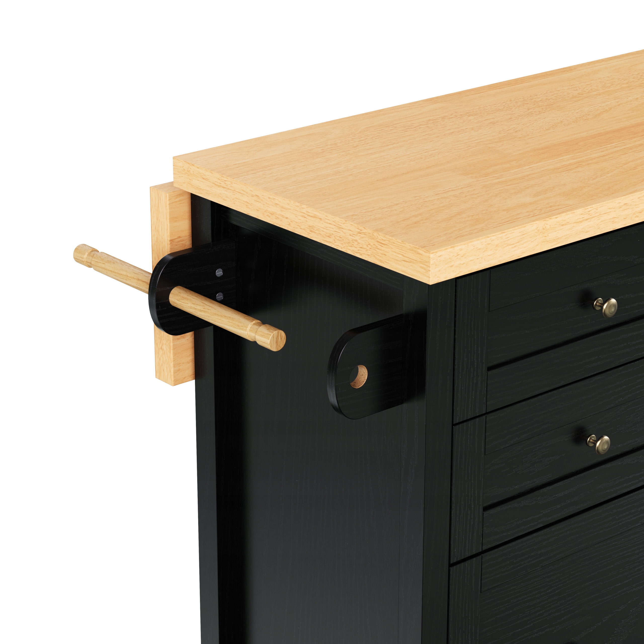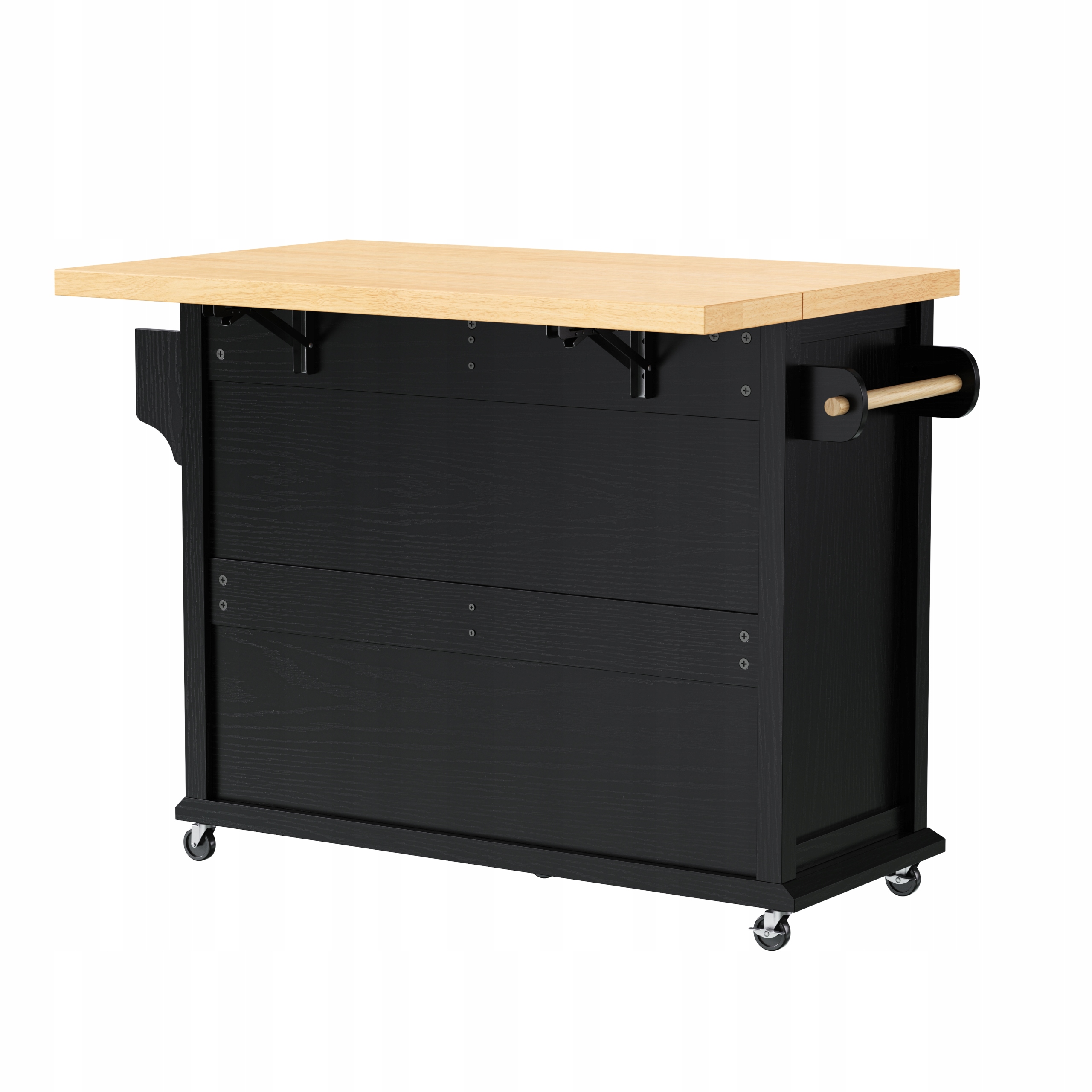 Мобильный кухонный остров на колесиках, выдвижной стол, черная кухонная тележка.