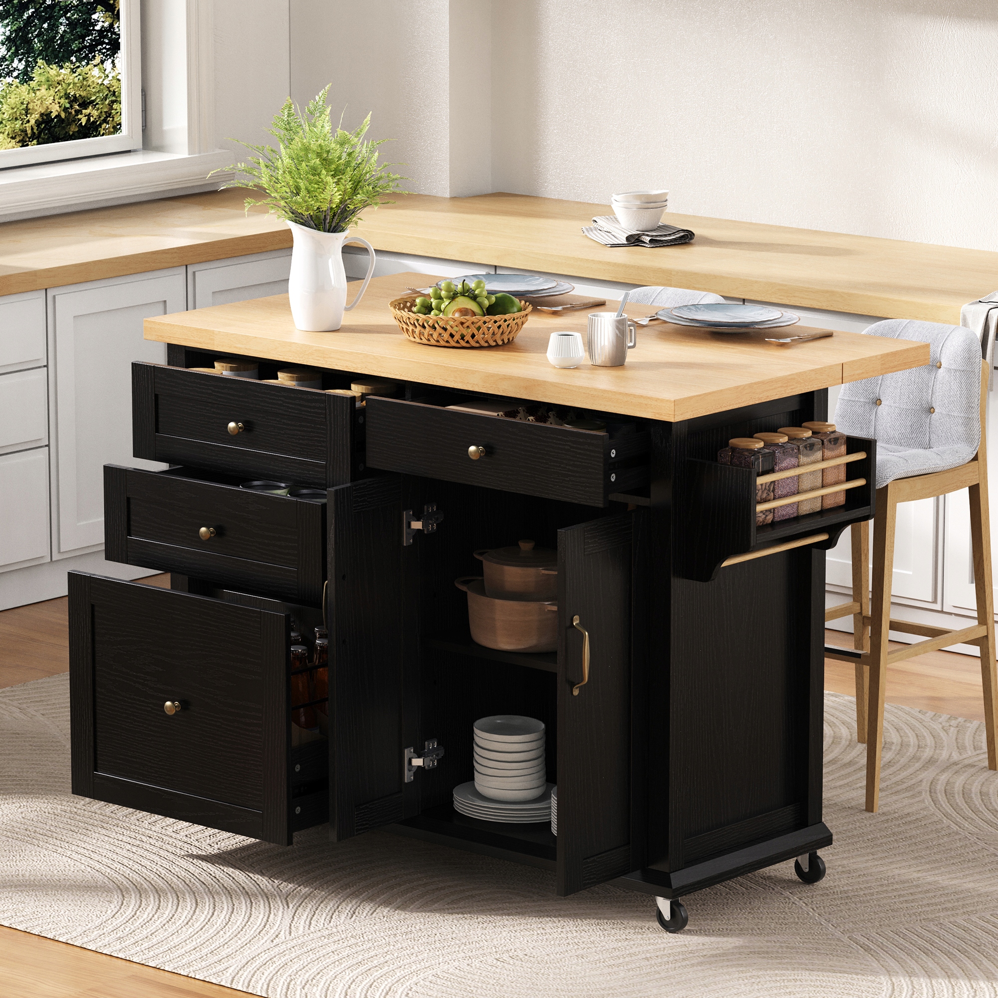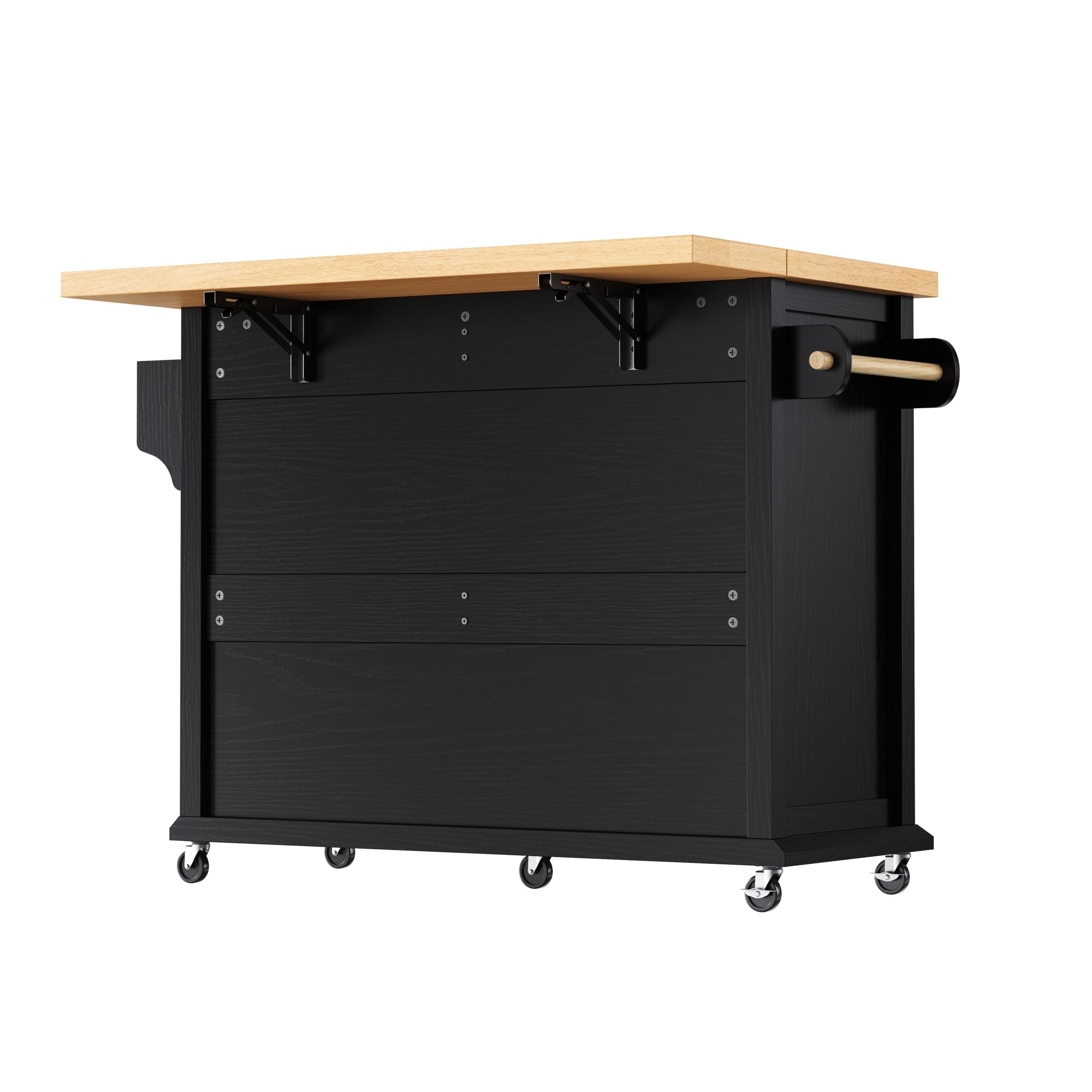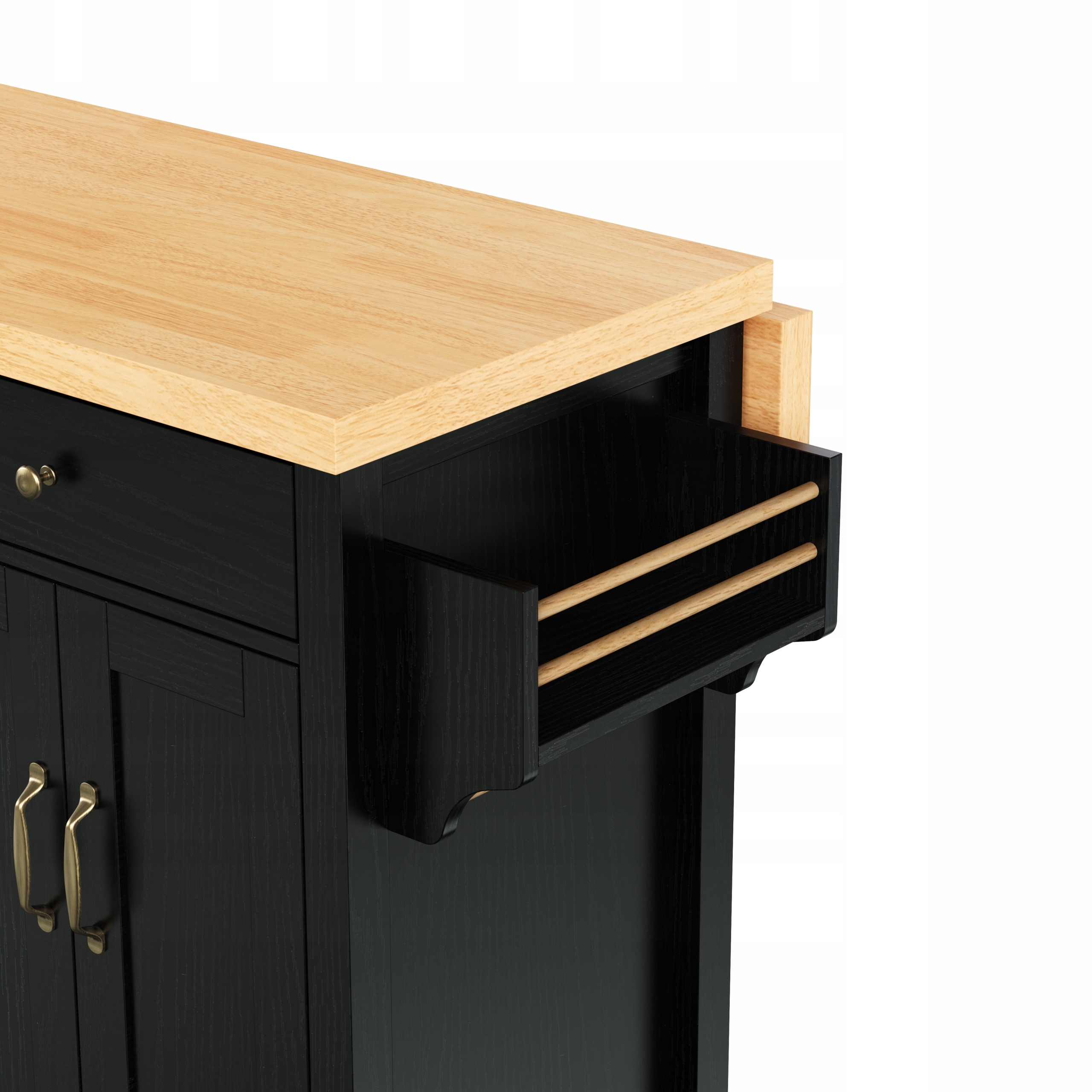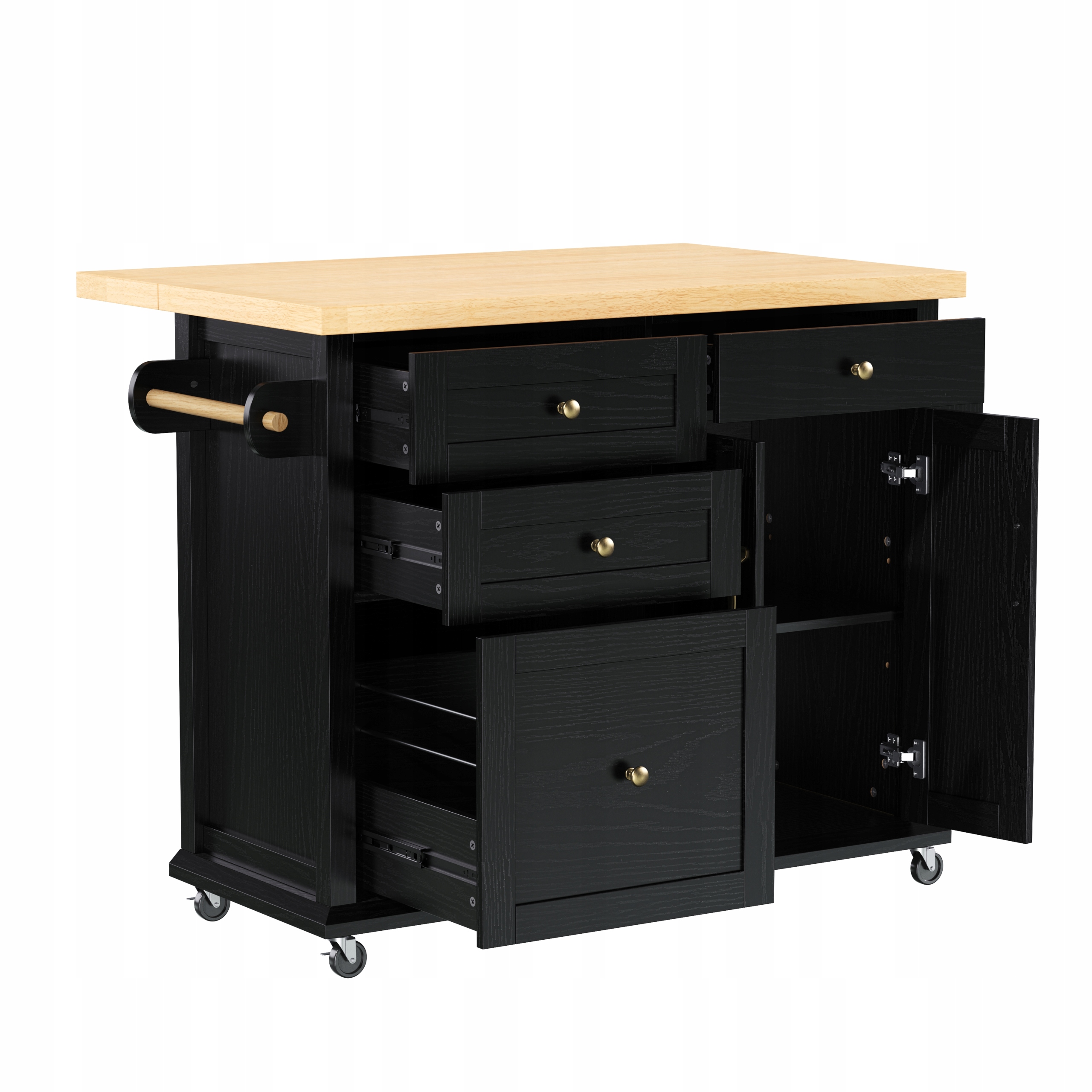 Мобильный кухонный остров на колесиках, выдвижной стол, черная кухонная тележка.
