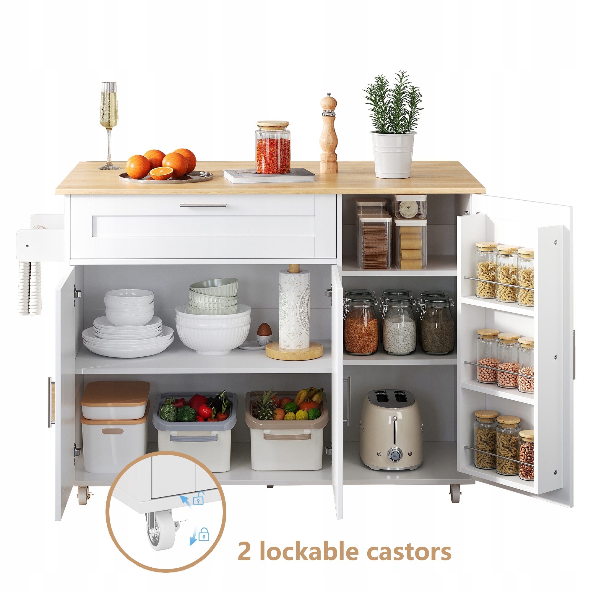 Большая передвижная кухонная тележка со складной столешницей – имитация дуба – шкаф для хранения и полки для специй – 5 колес