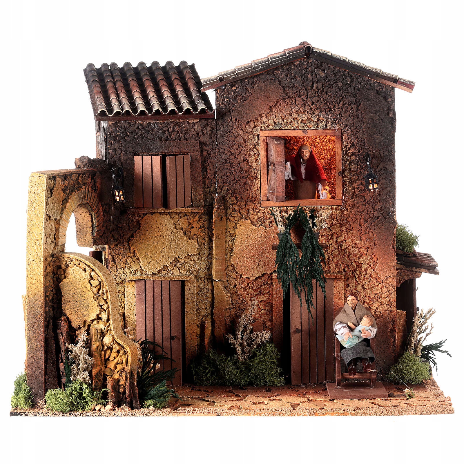 ПОДВИЖНЫЙ НЕАПОЛИТАНСКИЙ ВЕРТЕП с подсветкой ЖЕНЩИНЫ В МНОГОквартирНОМ ДОМЕ 40x45x35 см