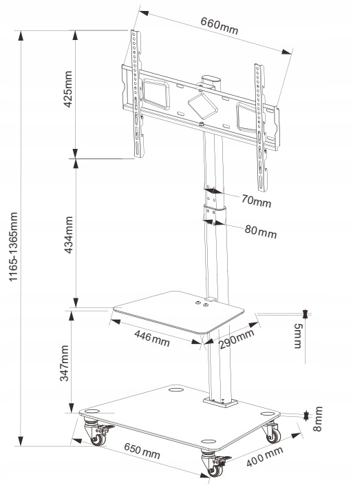 - ✅Регулируемая высота в двух местах (стойка и держатель телевизора)