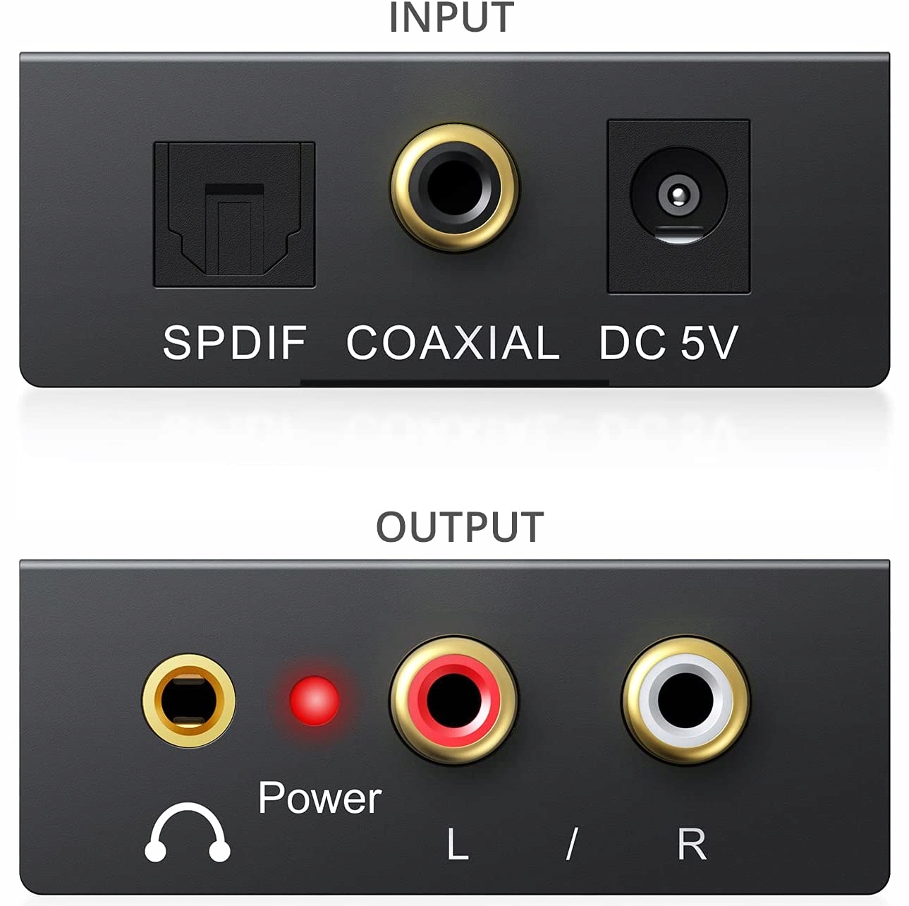 Конвертер позволяет подключать устройства, оснащенные цифровым оптическим Toslink или коаксиальным аудиовыходом (телевизор, приставка и т. д.), к домашнему кинотеатру, ресиверу, колонкам или наушникам, оснащенным аналоговым разъемом «тюльпан» или разъемом 3,5 мм. разъем