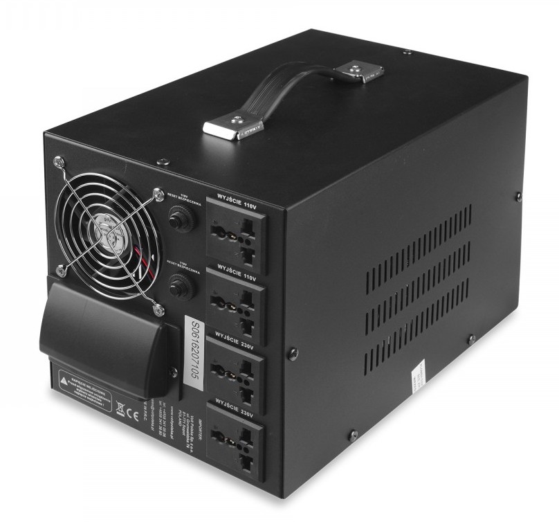 VP 5000 230/110 В VP-преобразователь используется для снижения напряжения переменного напряжения AC-230V до переменного напряжения AC-110V или для увеличения напряжения переменного напряжения AC-110V до напряжения переменной AC-230V. Чрезвычайно полезен, когда мы хотим питать оборудование из США, Япония.