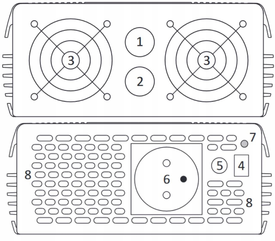 SINUSпреобразователь напряжения, используемый для питания электрических устройств, требующих переменного напряжения 230В от аккумуляторов и автомобильных установок с 12В постоянного тока.