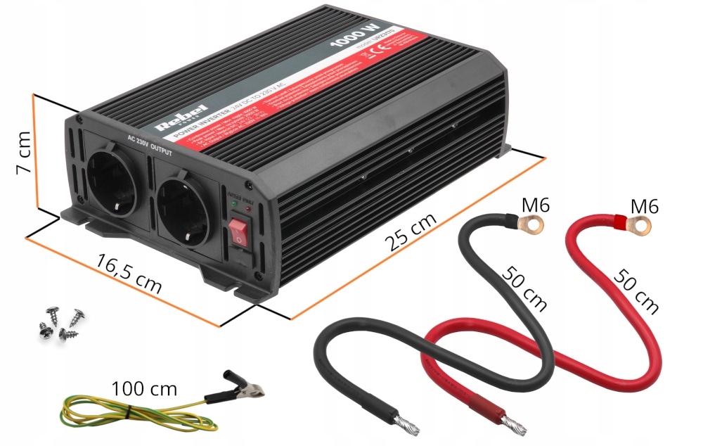Преобразователь Rebel 24V выдает так называемое выходное напряжение. модифицированная синусоидальная волна, т. е. переменное напряжение прямоугольной формы. Благодаря этому он может питать резистивные устройства, такие как: ноутбуки, зарядные устройства и т. д.