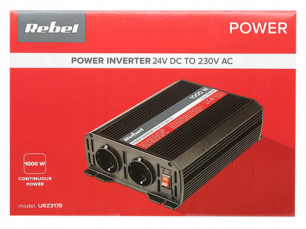 ПРЕОБРАЗОВАТЕЛЬ НАПРЯЖЕНИЯ 24В 230В 2000ВТ ДВЕ РОЗЕТКИ