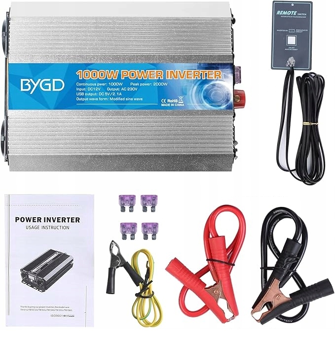 ПРЕОБРАЗОВАТЕЛЬ НАПРЯЖЕНИЯ BYGD 1000 Вт 12 В СИНУСОНАЛЬНЫЙ ИНВЕРТОР ИНВЕРТОР