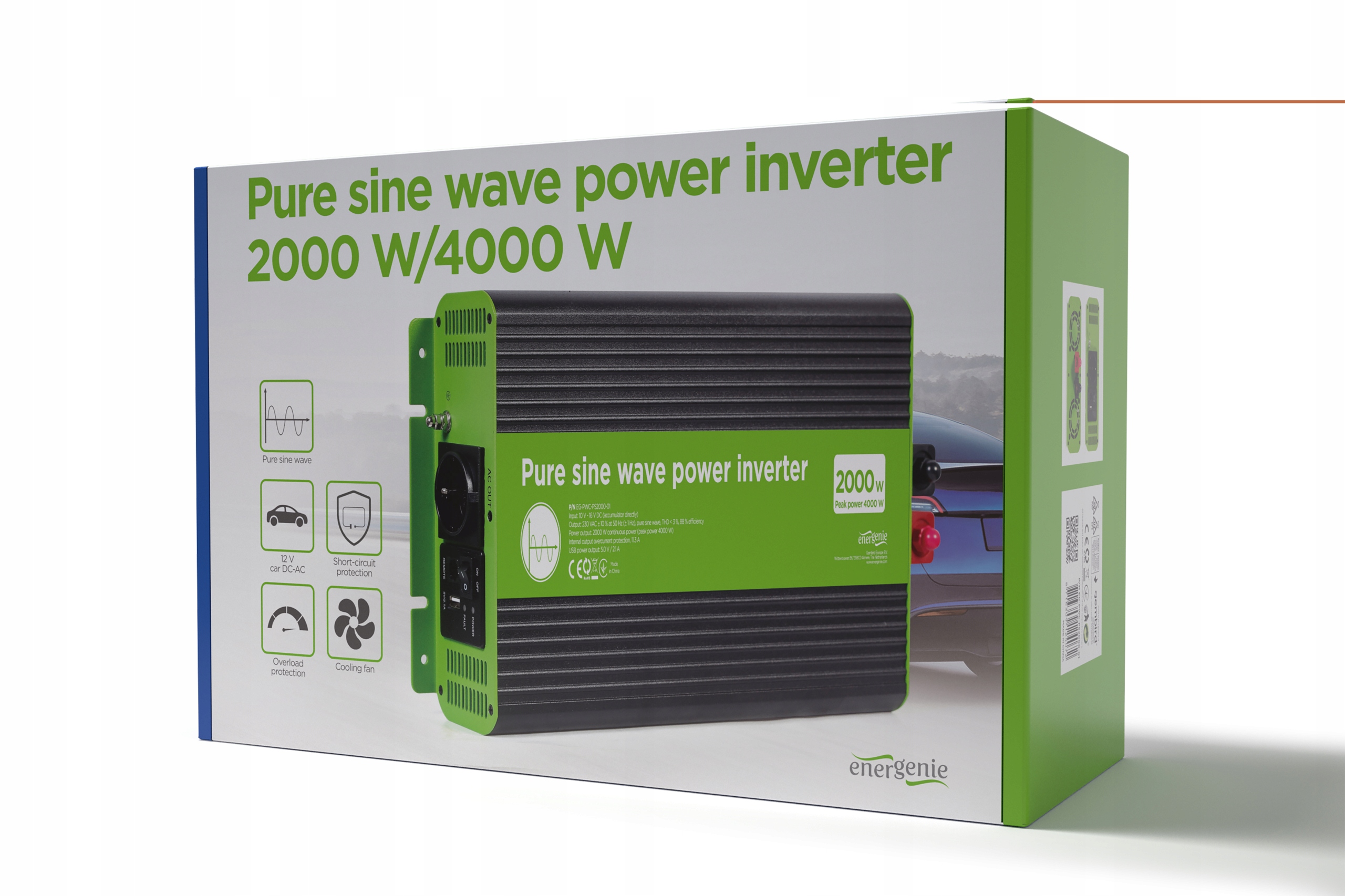 ✔ Car -преобразователя с мощностью 2000 Вт с одним сокетом и чистым синусоидальной волной