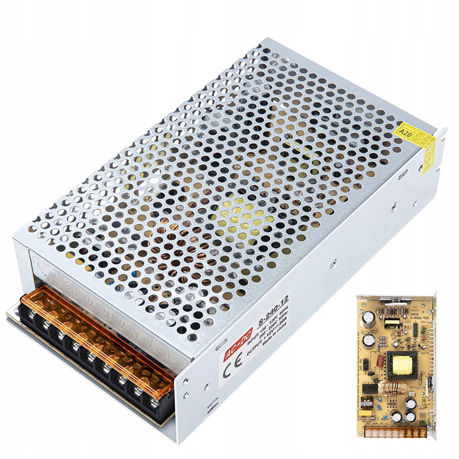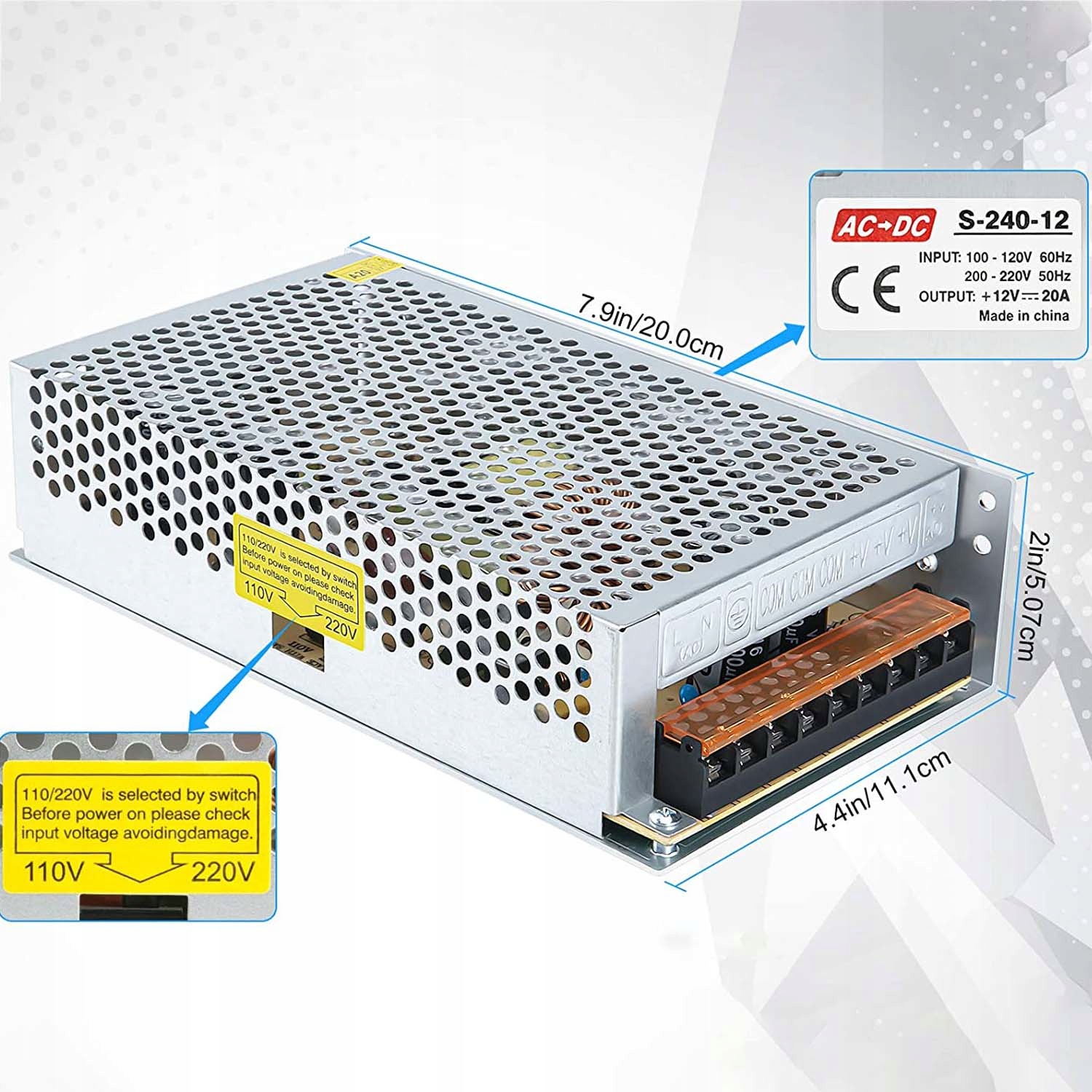 AC 110/220V Impled для DC 12V 20A 240W Руководитель Внутренняя катушка изготовлена из чистой медной катушки, а срок службы более чем в два раза выше, чем в случае алюминиевой проволоки.