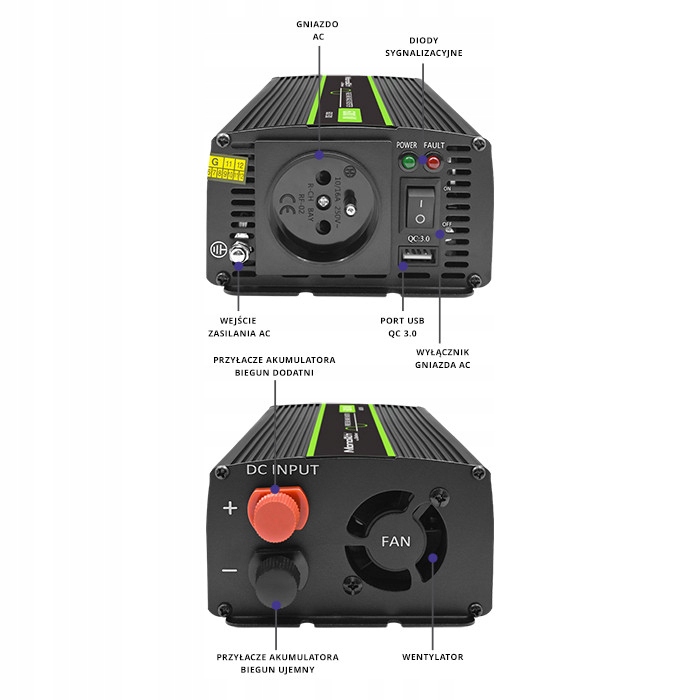 Преобразователь марки Qoltec представляет собой чистый синус, он выдает такой же ток, как и в сети 230 В. Socket, обеспечивающий безопасность всех подключенных устройств. Он будет идеален как при отключении электроэнергии, так и во время путешествия, когда у нас нет доступа к розетке.