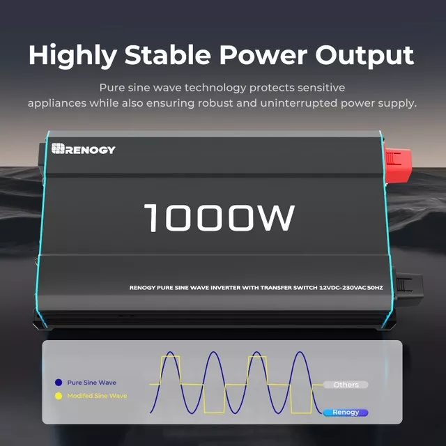 - Модель: Renogy 1000 Вт, 12 В, инвертор чистой синусоидальной волны