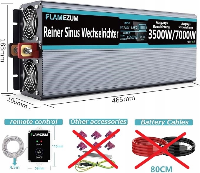 - ▶ Что вы получили? ◀ 1 X Инвертор 3500 Вт, 1 х пилот, 2 набора беспроводных кабелей, 1 x Руководство пользователя (английский), 6 x резервного предохранителя