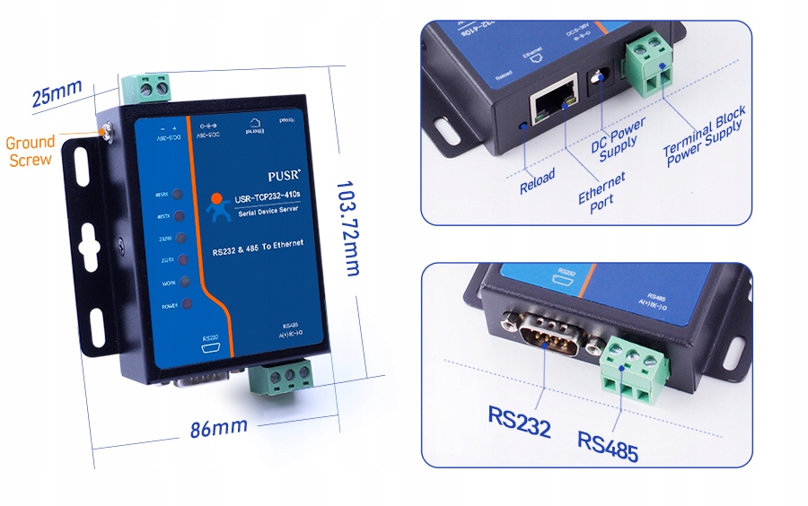 Преобразователь RS232 RS485 в Ethernet USR TCP232-410s H7 EDGE