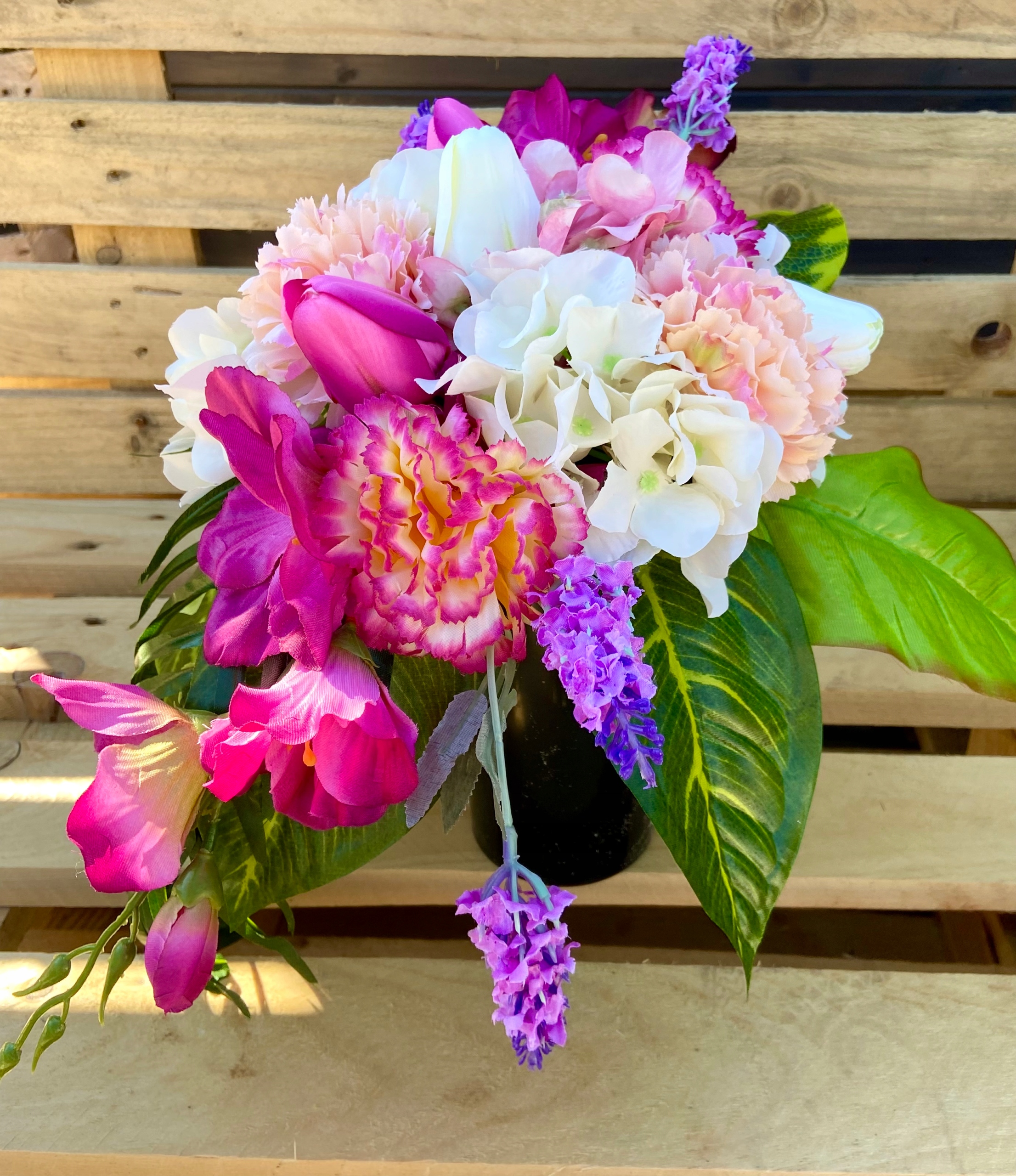Красивый весенний букет, центральное украшение, букет тюльпанов, на могилу, кладбище, Пасху