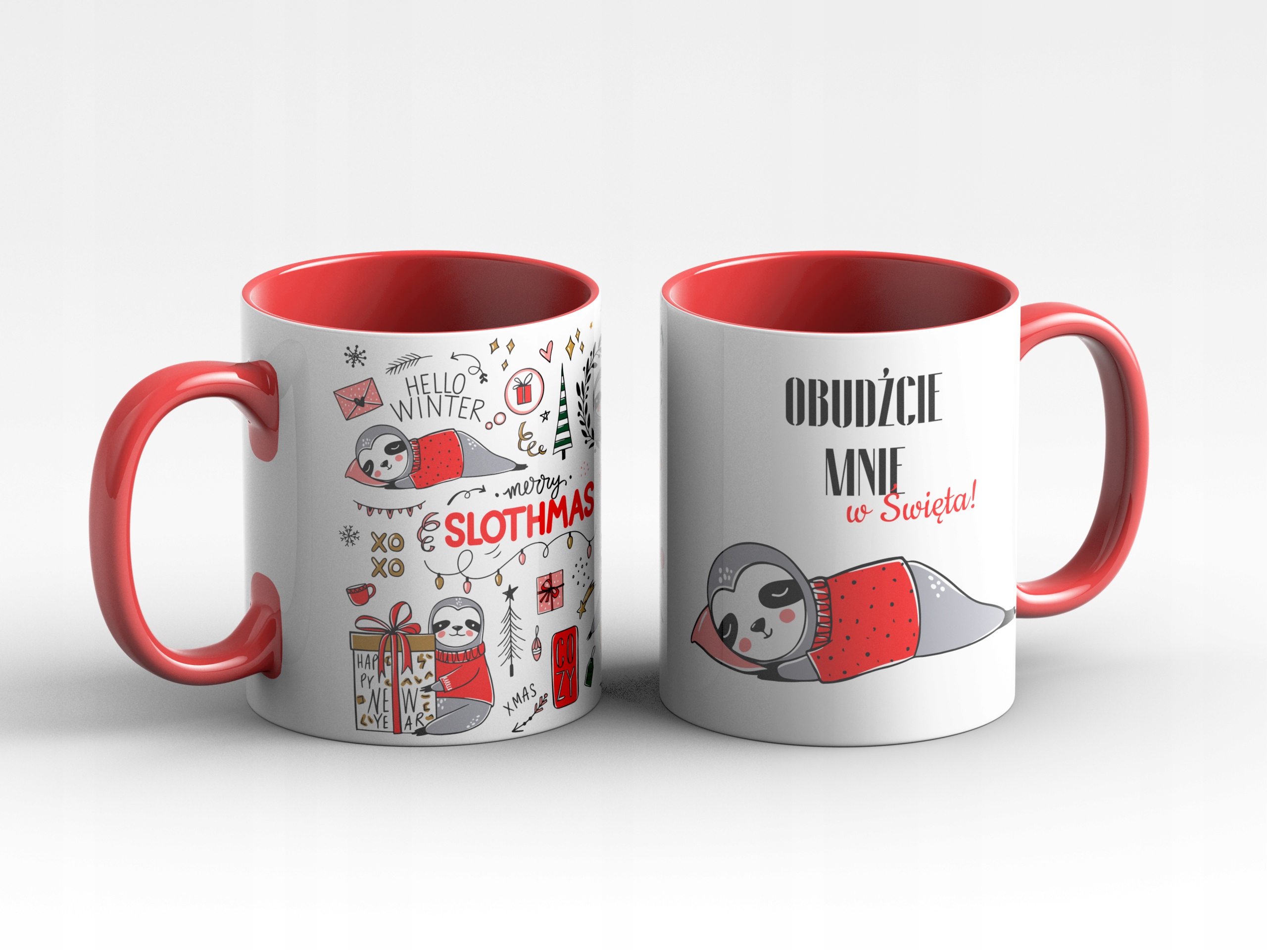 - Кружка белая с красным центром и ручкой - двусторонний принт (объём: 330мл; высота: 95мм, диаметр: 82мм)