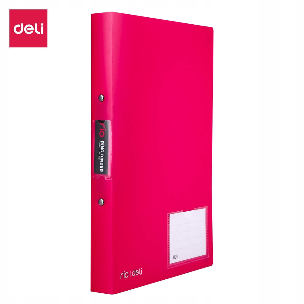 Папка-переплет DELI на 2 кольцах, серия RIO PP, с РОЗОВЫМ карманом