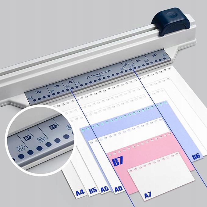 * 【Дырокол для бумаги формата А4】: универсальный дырокол для бумаги формата А4 на 30 отверстий с механизмом «тяни-толкай», идеально подходящий для офисного использования.