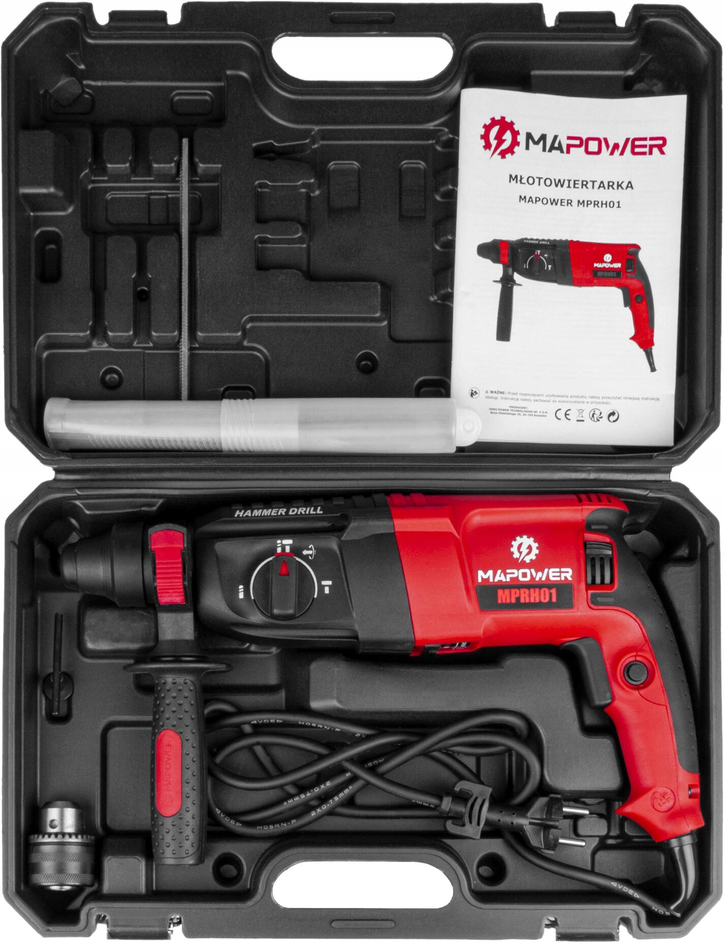 Бренд бурового молотка deko . Эффективное сетевое устройство, оснащенное мощным 1050 в двигателе. Тренировка молотка достигает мощности удара 3,2 J. Устройство обеспечивает максимальный диаметр бурения в дереве 30 мм, сталь 13 мм и бетон 26 мм. С учетом молотка включены: ручка с расстоянием, буровой патрон с самостоятельным зажарием, SDS+ Chock, Dilect, Spike и 3 Dlil Bit. Набор поставляется в удобном корпусе, который облегчает транспортировку и хранилище.