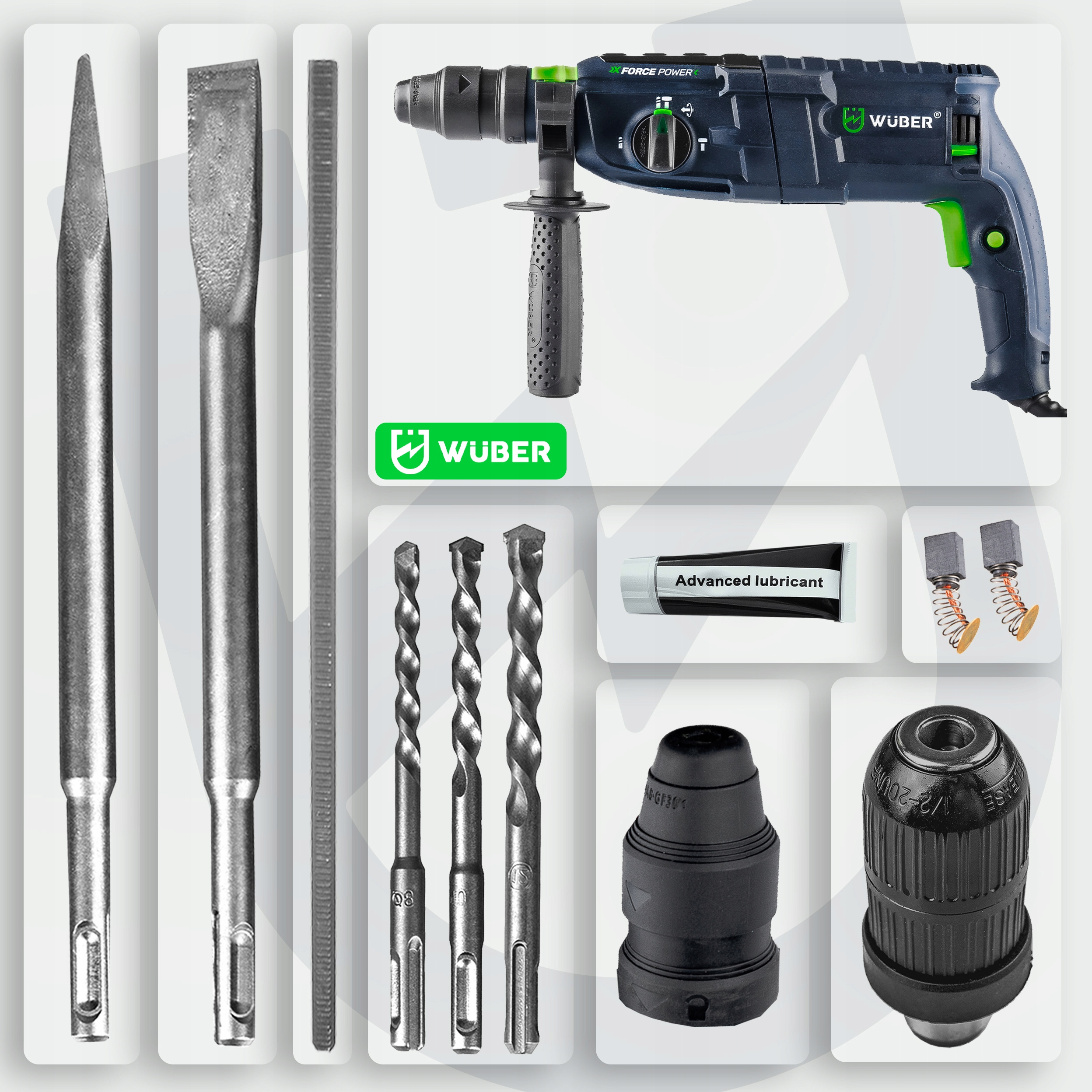 УДАРНИЙ ДРИЛЬ 4000BPM 4J DRILL 2500W 230V SDS + САМОЗАЖИМ WUBER