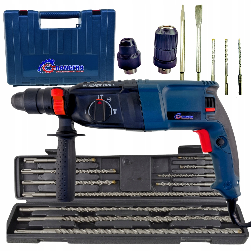Ударная дрель RANGERS оснащена эффективным двигателем мощностью 3050 Вт. Предлагаемое устройство представляет собой изделие, которое можно использовать как для ремонта дома, так и для более тяжелых строительных работ.