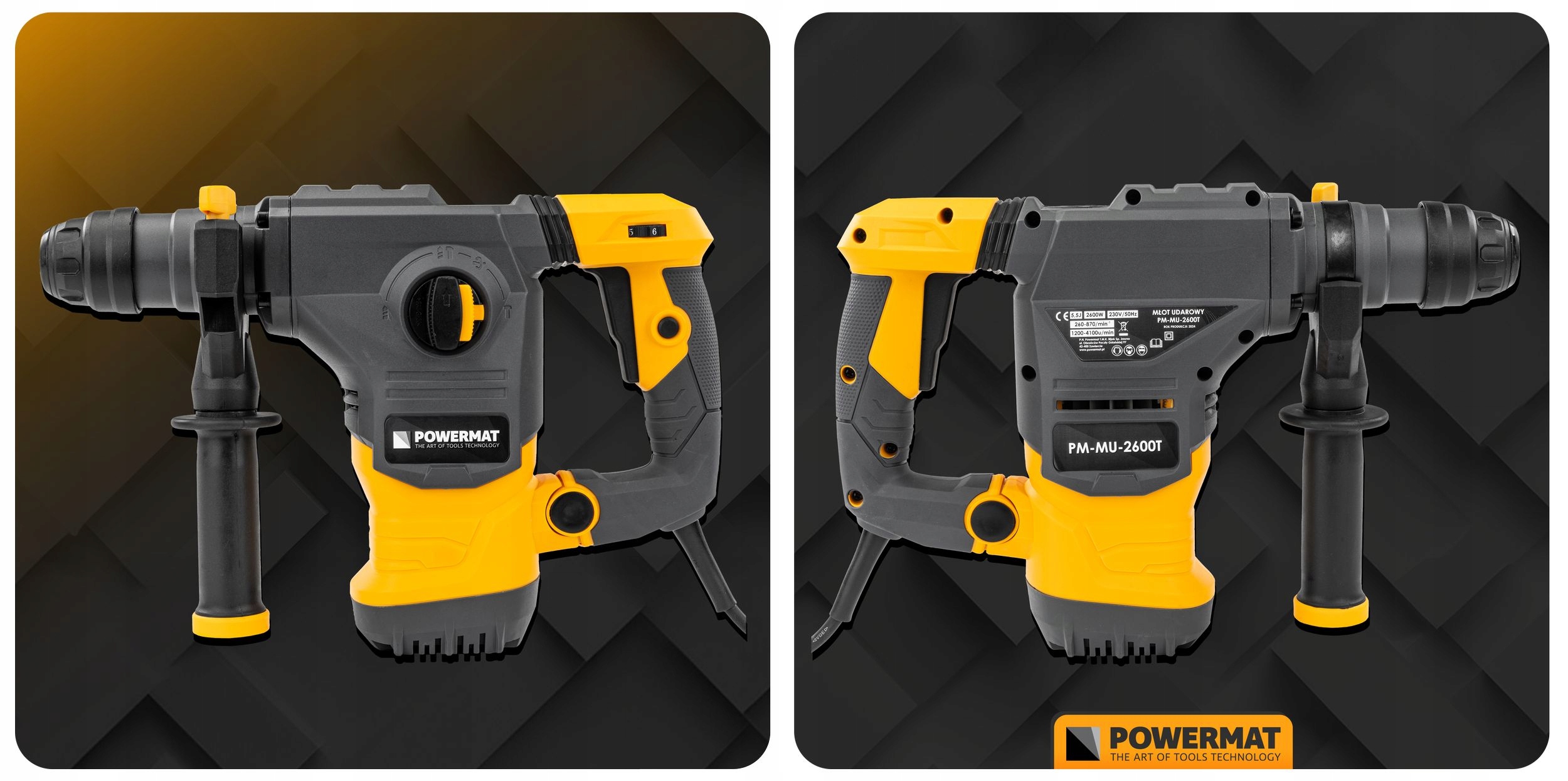 Ударный молоток Powermat мощностью 2600 Вт — надежный инструмент для сверления и долбления, идеально подходящий как для любителей, так и для профессионалов. Оснащенный системой SDS PLUS, он облегчает быструю замену сверла, а антивибрационная система AVH повышает комфорт работы за счет снижения утомляемости. Молот имеет четыре режима работы, что делает его универсальным инструментом для различных применений.