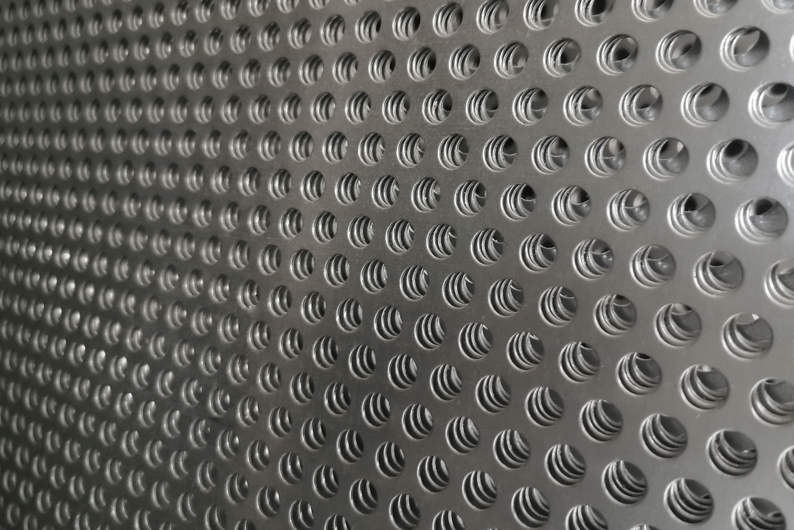 Оцинкованный перфорированный лист (горячее цинкование серебром) с круглыми отверстиями, расположенными в шахматном порядке.
