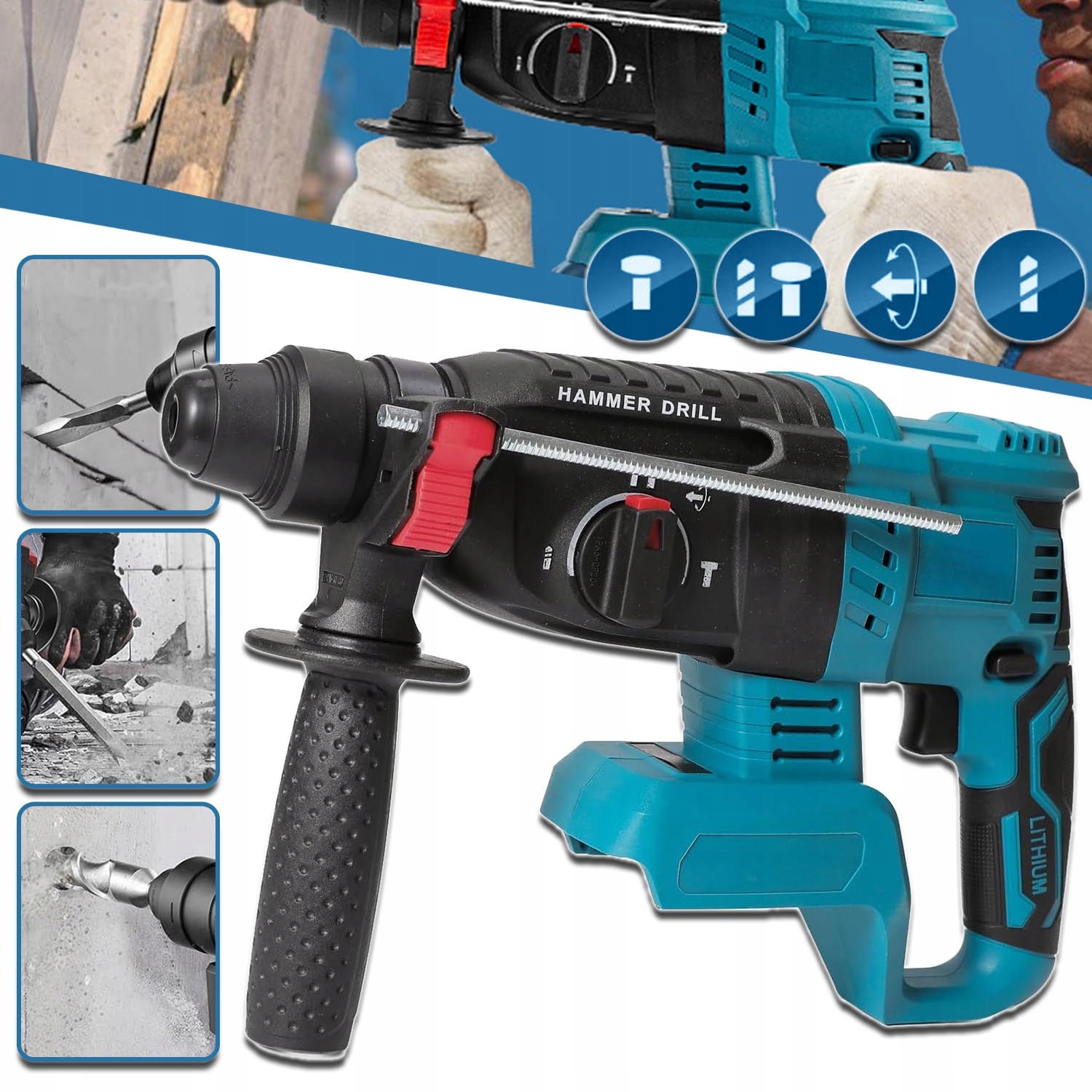 РОТОРНАЯ ПЕРФОРАТОРНАЯ ДРЕЛЬ, СОВМЕСТИМАЯ С АККУМУЛЯТОРОМ MAKITA 18 В, 3 РЕЖИМА