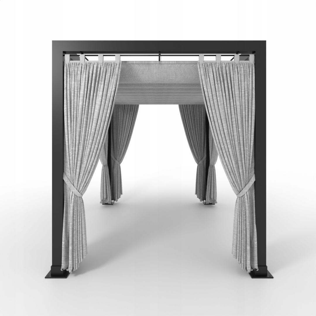 Дополнительные элементы, такие как шторы и римские шторы, в аукцион не включены. Они являются декоративным и визуальным элементом, демонстрирующим возможности обустройства и композиции беседки. В комплект перголы входят 10 горизонтальных металлических трубок длиной 180 см, которые используются для изготовления каркаса рулонных штор из водонепроницаемого материала. Мы не включаем сам материал.