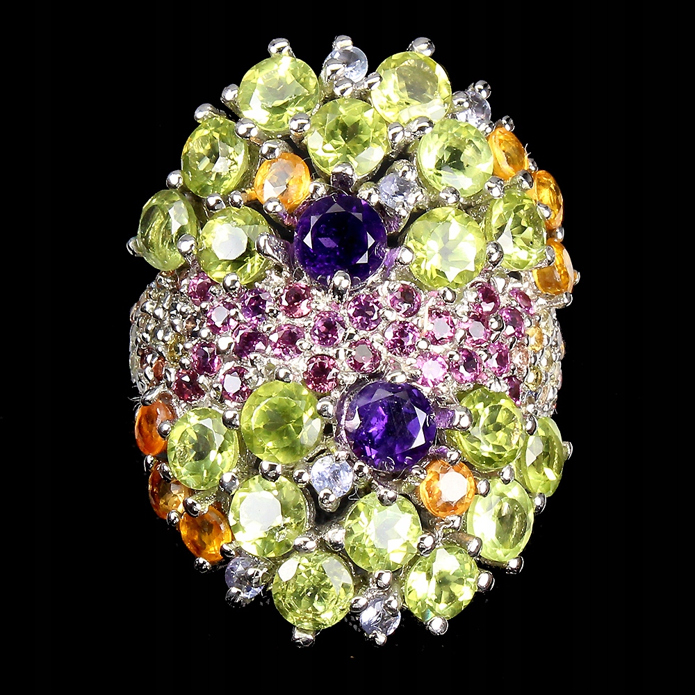 PERIDOT GRANAT AMETYST SZAFIR DUZY PIERSCIONEK