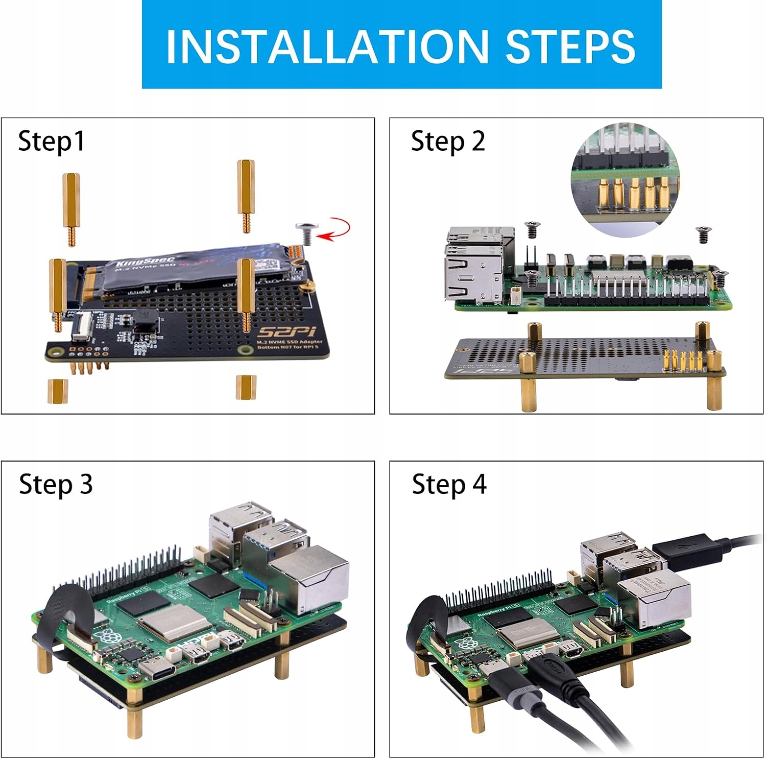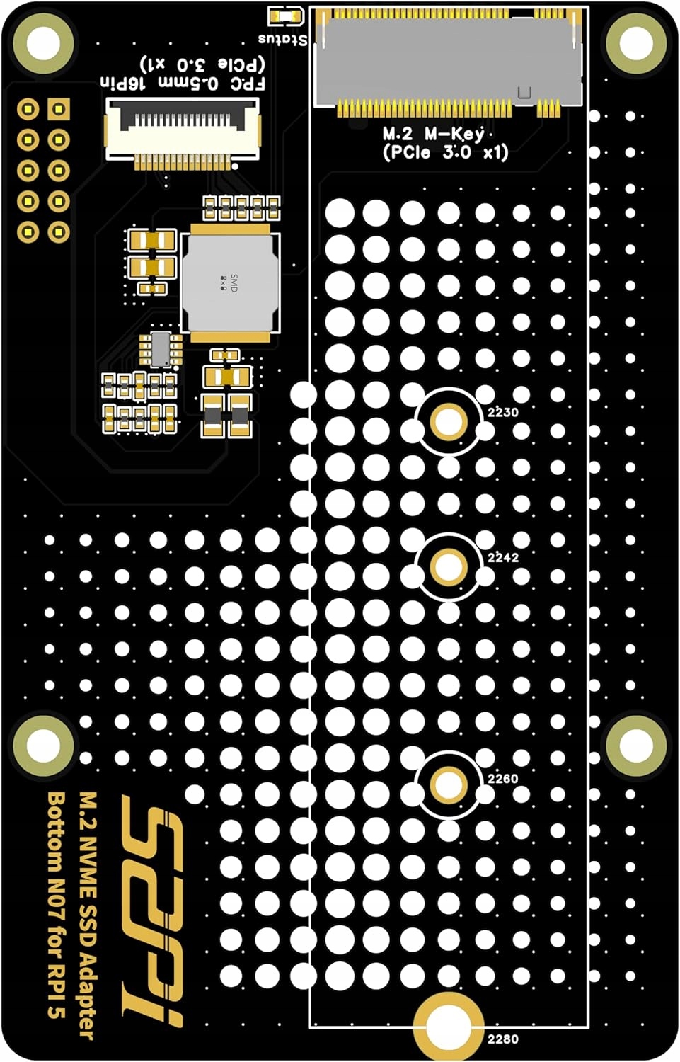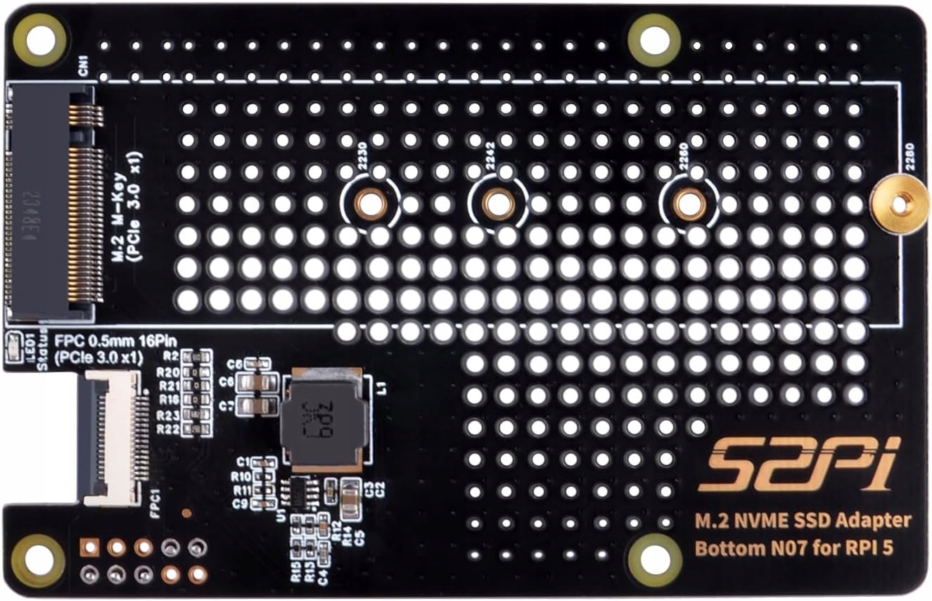 Адаптер SSD-накопителя GeeekPi N07 M.2 NVMe — это решение для нижнего монтажа, позволяющее устанавливать твердотельные накопители NVMe M.2 M-key типоразмеров 2230, 2242, 2260 и 2280.