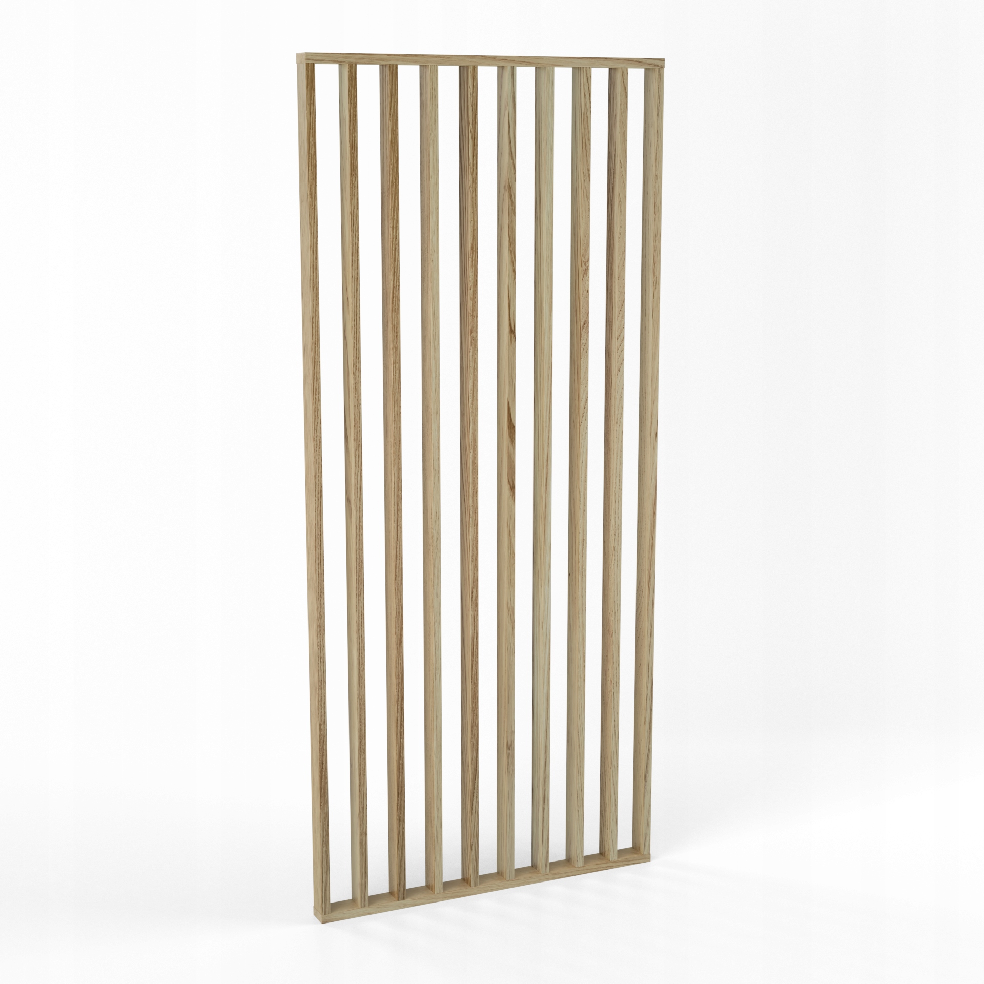 Предметом предложения является балюстрада/здание/стена с вертикальной ламельной конструкцией из необработанного дуба или ясеня, отшлифованная зернистостью 120 - готовая к лакированию.
