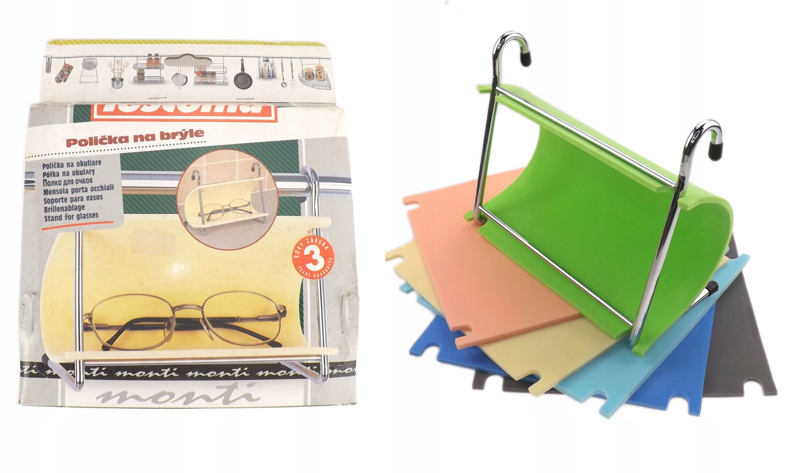 ПОЛКА СТЕКЛЯННАЯ, ДЛЯ ПОДВЕСА НА рейку ИЛИ ОТДЕЛЬНО СТОЯЩАЯ, 6 ЦВЕТОВ ПЕНА В НАБОРЕ, ХРОМИРОВАННАЯ СТАЛЬ, ФИРМЕННОГО ПРОИЗВОДИТЕЛЯ