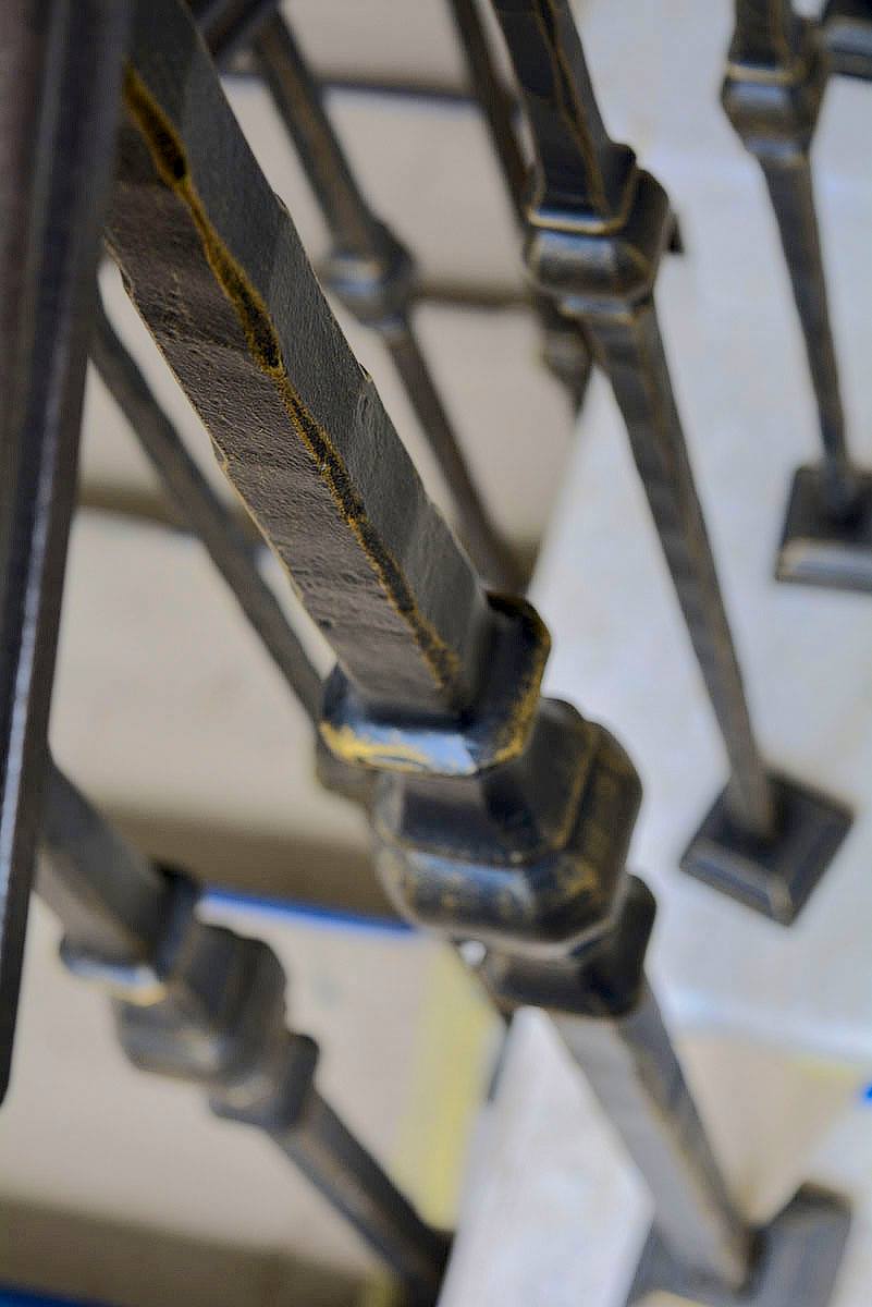 Балясины выкованы с помощью пневматического молота, выкованы из цельного металлического прутка, поэтому на них нет следов сварка. Каждая балясина представляет собой монолитный стальной элемент.