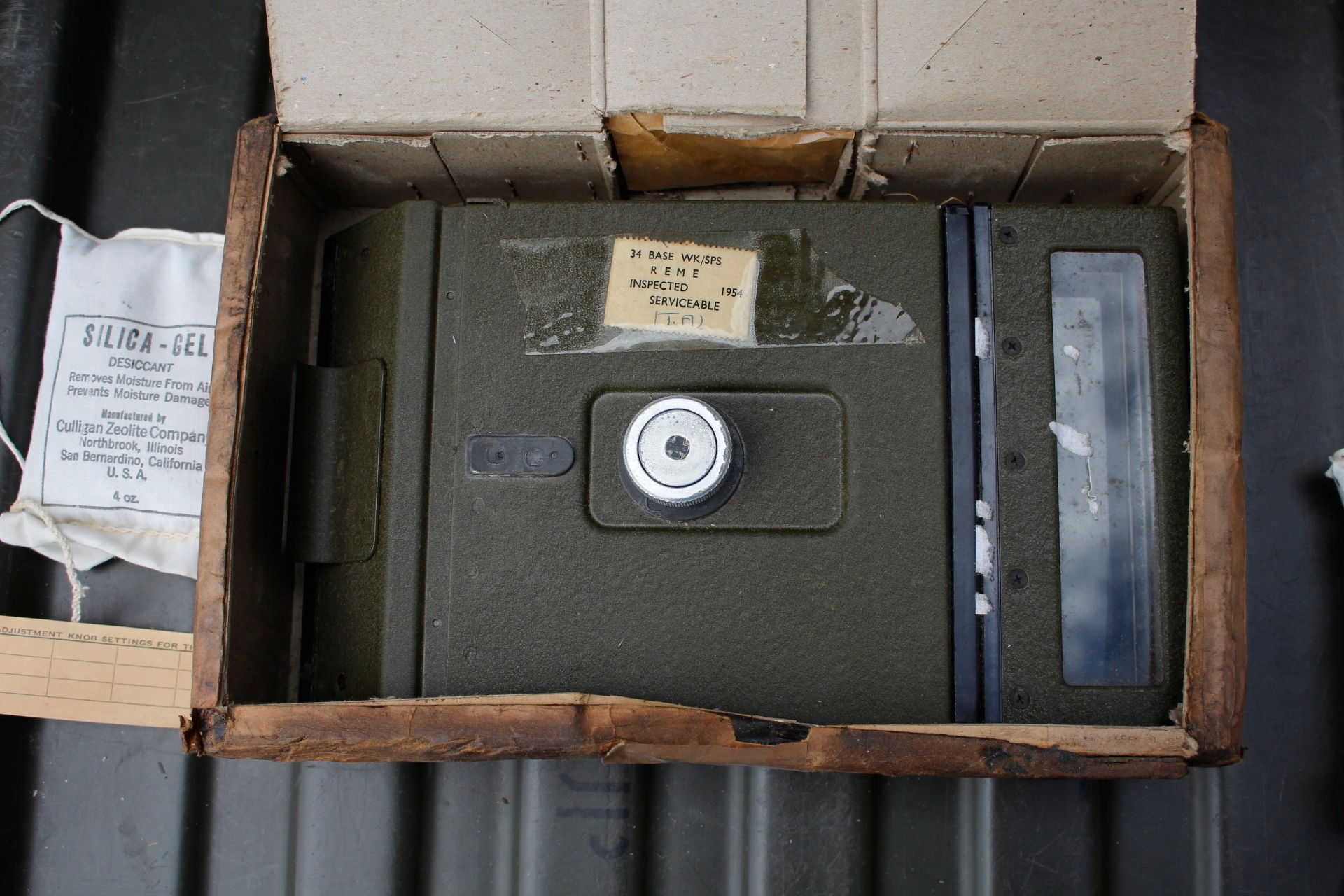 Вес: 2552 г Материал: Корпус: металл Линзы: стеклоПерископ типа М6, использовался на американских бронетанковых танках времен Второй мировой войны, таких как Шерман и Стюарт. Этот перископ монтировался путем вставки устройства в кронштейн и зацепления его за губу. Затем центральную ручку с накаткой затянули, чтобы закрепить ее на месте. Если какая-либо из двух стеклянных линз разбилась во время выстрела, линзу можно было быстро снять и заменить, повернув перевернутые ручки на любой стороне перископа, ближайшей к поврежденной линзе, что освободило бы линзу для замены. В каждом «Шермане» поздней модели было по 12 перископов М6. Шесть установлены в разных местах: один во вращающемся колпаке механика-водителя и стационарно перед ним. Пилот имел такое же расположение, но с другой стороны использовал люк или неподвижный перископ для наведения носового пулемета. У заряжающего на своем месте был вращающийся перископ, а у командира – в люке. На стенках башни располагались два комплектных перископа М6: один возле заряжающего, другой возле командира. В креплении на капоте водителя находились четыре комплектных М