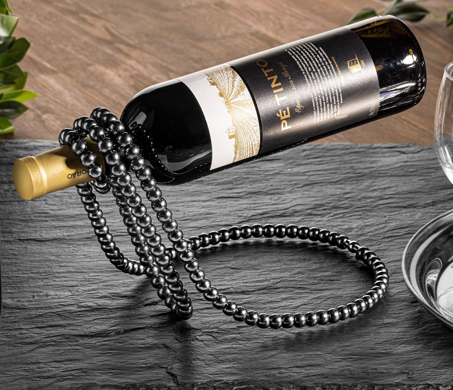 Наш жемчуг — идеальная имитация, а подставка производит настоящее впечатление. Помещенная в него бутылка тоже выглядит так, будто она парит вопреки законам физики, что только увеличивает масштаб восторга. Вы просто не можете игнорировать эту позицию. Даже не очень изысканные сорта вина, помещенные на эту феноменальную жемчужную нить, будут выглядеть благороднее обычного ;)