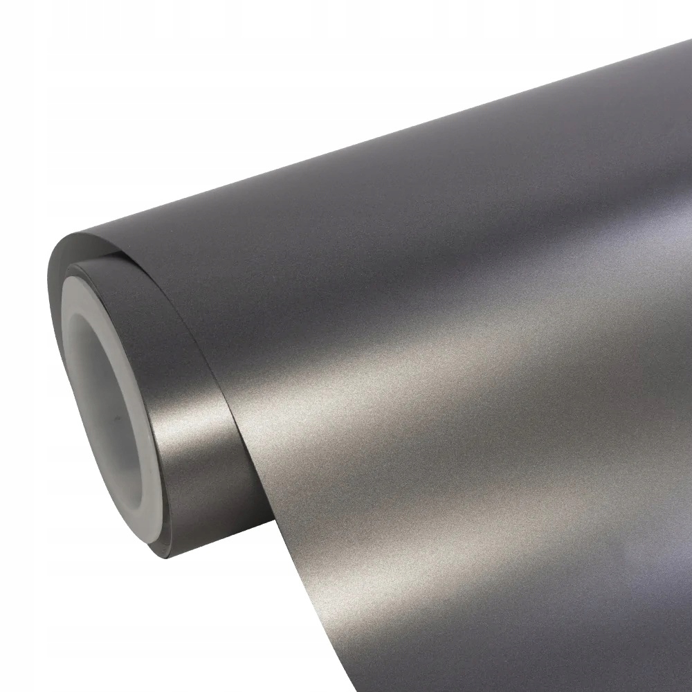 Автомобильная пленка серая сатиновая. Фольга имеет микроканальный клей, который облегчает удаление пузырьков воздуха во время нанесения, что делает нанесение проще и быстрее по сравнению с фольгой с обычным клеем. Фольга термопластичная, идеально подходит для наружного применения - оклейка автомобилей целиком, а также внутреннего применения, например, для декоративных элементов кабины, приборной панели и т.п. В фольге используется прочный самоклеящийся клей, защищенный слоем бумажной подложки.
