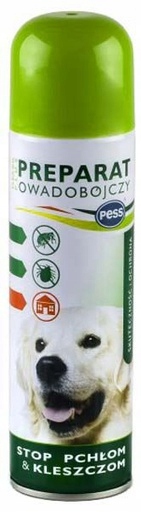 Инсектицид «Песс Фли-Кил Плюс» предназначен для борьбы с насекомыми в среде обитания животных. К ним относятся: кровати, ковры, ошейники и поводки. Этот агент нельзя использовать непосредственно на животных. В состав входят: 0,60% (0,60г/100г) ПБО/пиперонил флакон, 0,30% (0,30г/100г) тетраметрин, 0,10% (0,10г/100г) перметрин.